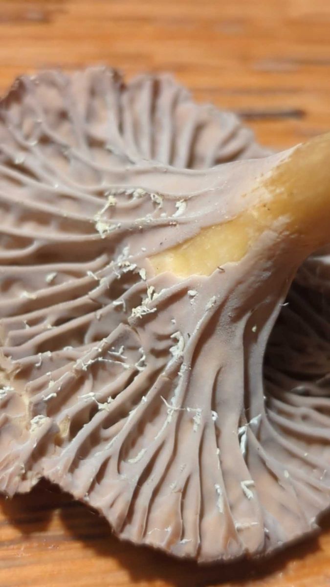 , mein Gedanke war, ob das vielleicht bei älteren Exemplaren regelmäßig auftritt - eben durch das Sporenpulver Das verfärbt ja bei anderen Pilzen auch die Lamellen bzw Röhren. Habe dazu aber weder in Literatur noch im Netz etwas dazu gefunden. Von daher gehe ich davon aus, dass es etwas anderes ist...