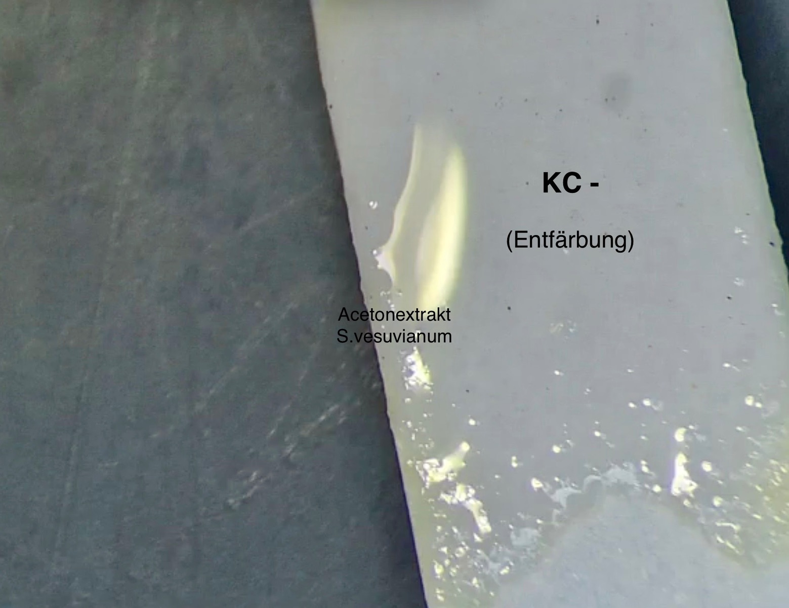 Bei 2 fand eine derartige KC Reaktion nicht statt, im UV Licht war ebenfalls nichts sichtbar.