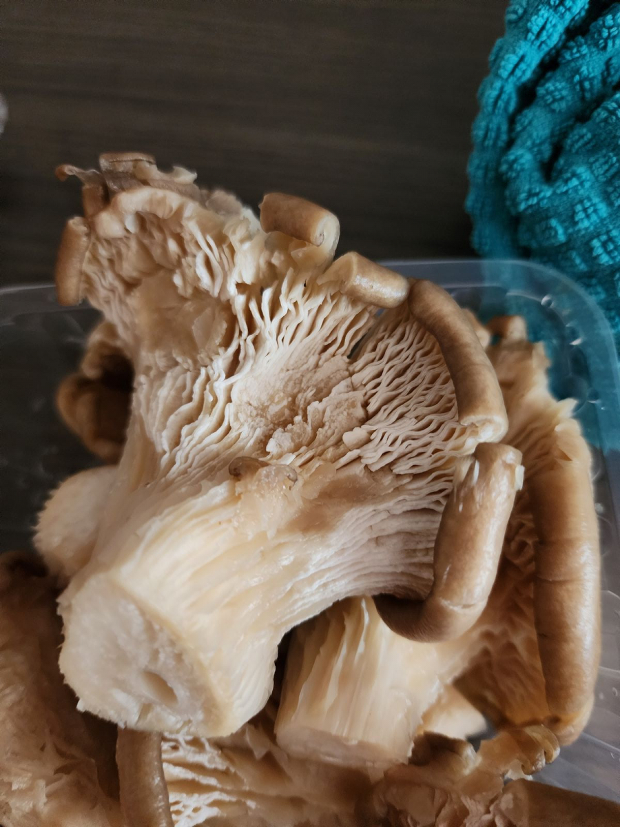Hallo, ich habe diese Austernpilze vor 2 Tagen gekauft. Sie waren in Plastik verpackt und seit dem Kauf im Kühlschrank. Kann mir jemand sagen, was diese weißen Stellen sind? Es ist kein klassischer Myzel, es ist fest, beinahe hart. Ich habe so etwas noch nie gesehen und bin mir unsicher, ob diese Austernpilze noch essbar sind.