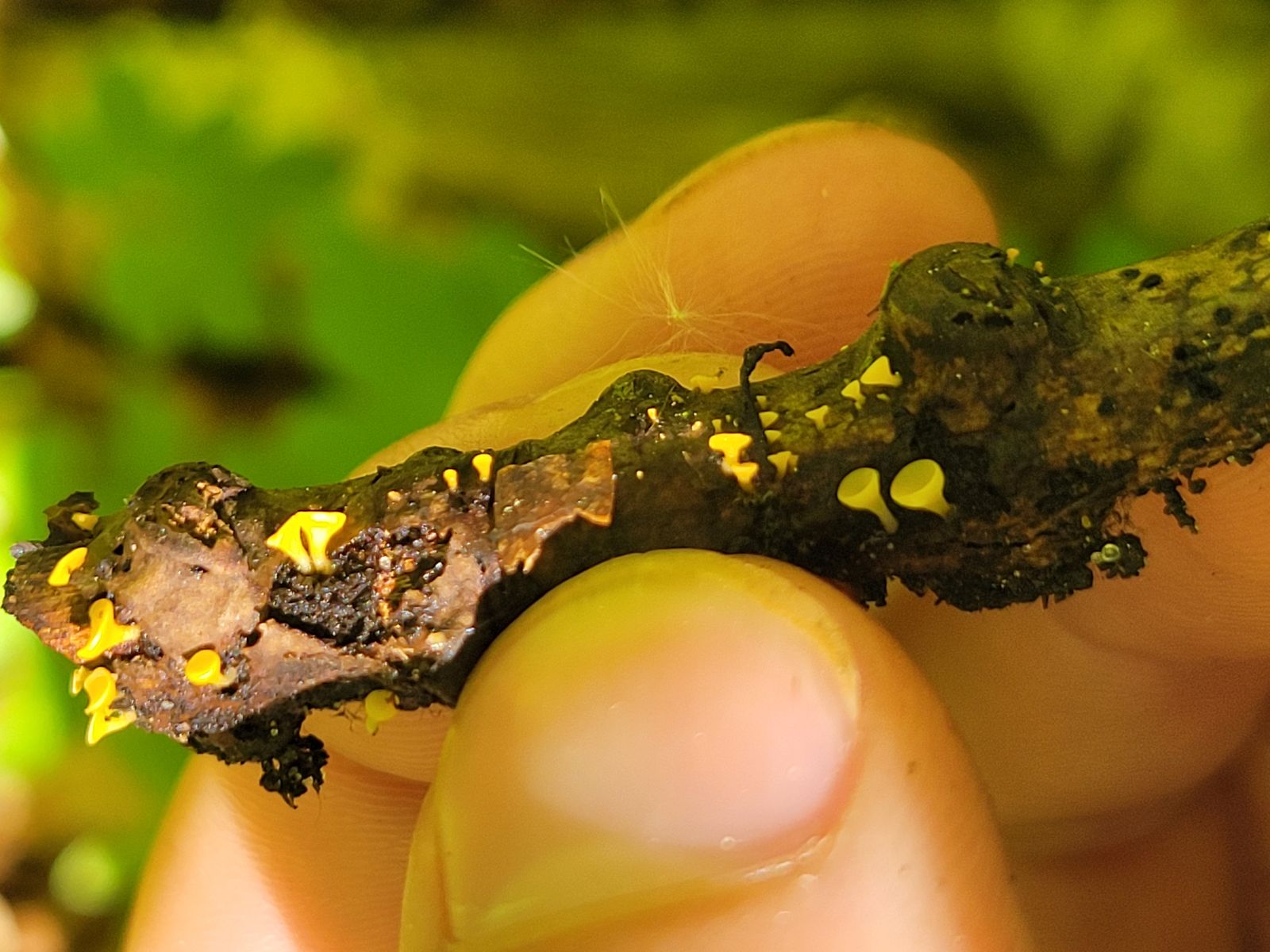 Nun möchte ich ihn bestimmen, weiss aber nicht wo ich anfangen soll... Ich hatte den Pilz inkl. Substat in meiner Wohnung feucht gehalten weil ich Angst hatte er trocknet vielleicht aus, bis ich ihn heute bestimmen wollte. Es ist leider nicht allzu viel zu erkennen aber naja...