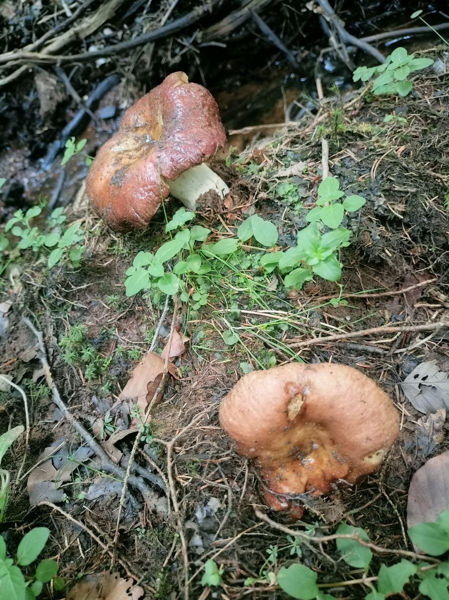 Ich habe Fotos von den Pilzen in verschiedenen Stadien, zuerst dachte ich es handelt sich um 2 verschiedene Arten wegen der unterschiedlichen Farbgebung, aber dann habe ich einige Exemplare gefunden, bei denen beide Farbtöne in einem Übergang vorhanden sind.