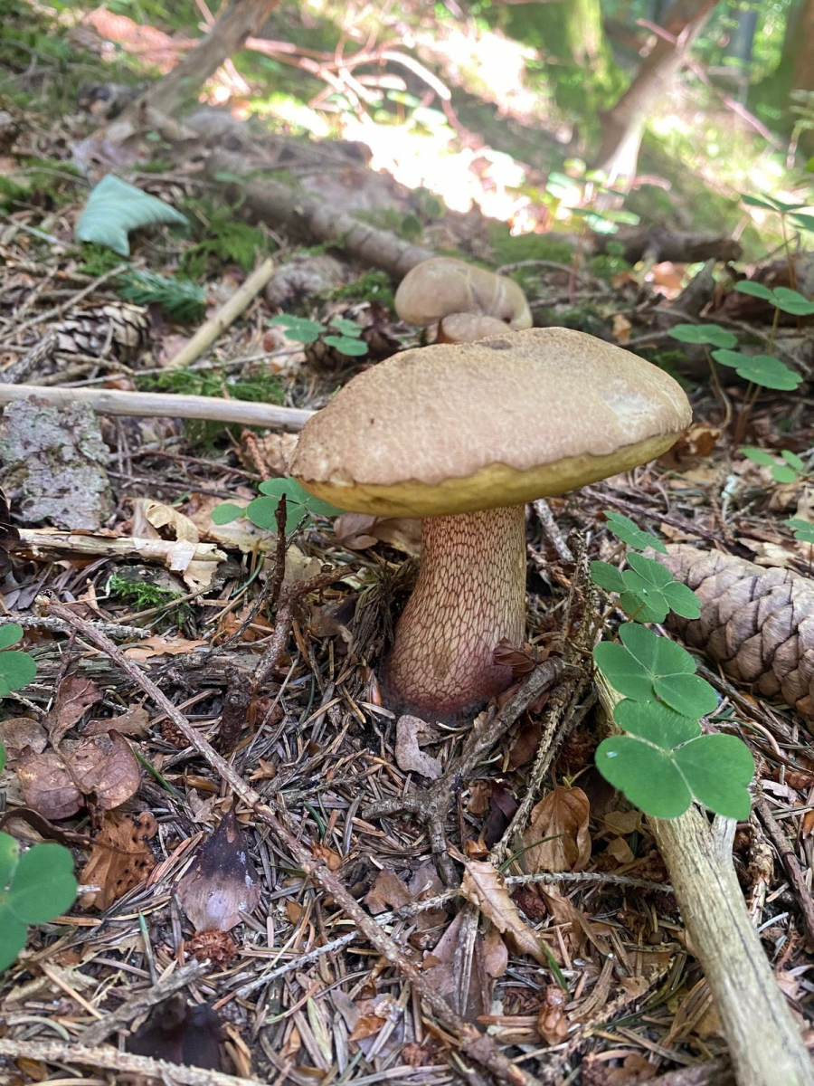 Pilzbestimmung SGG 21. Juni 2025 netzstieliger Hexenröhrling - trotz gelben Röhren (oder ist das wegen des Jungstadiums)?