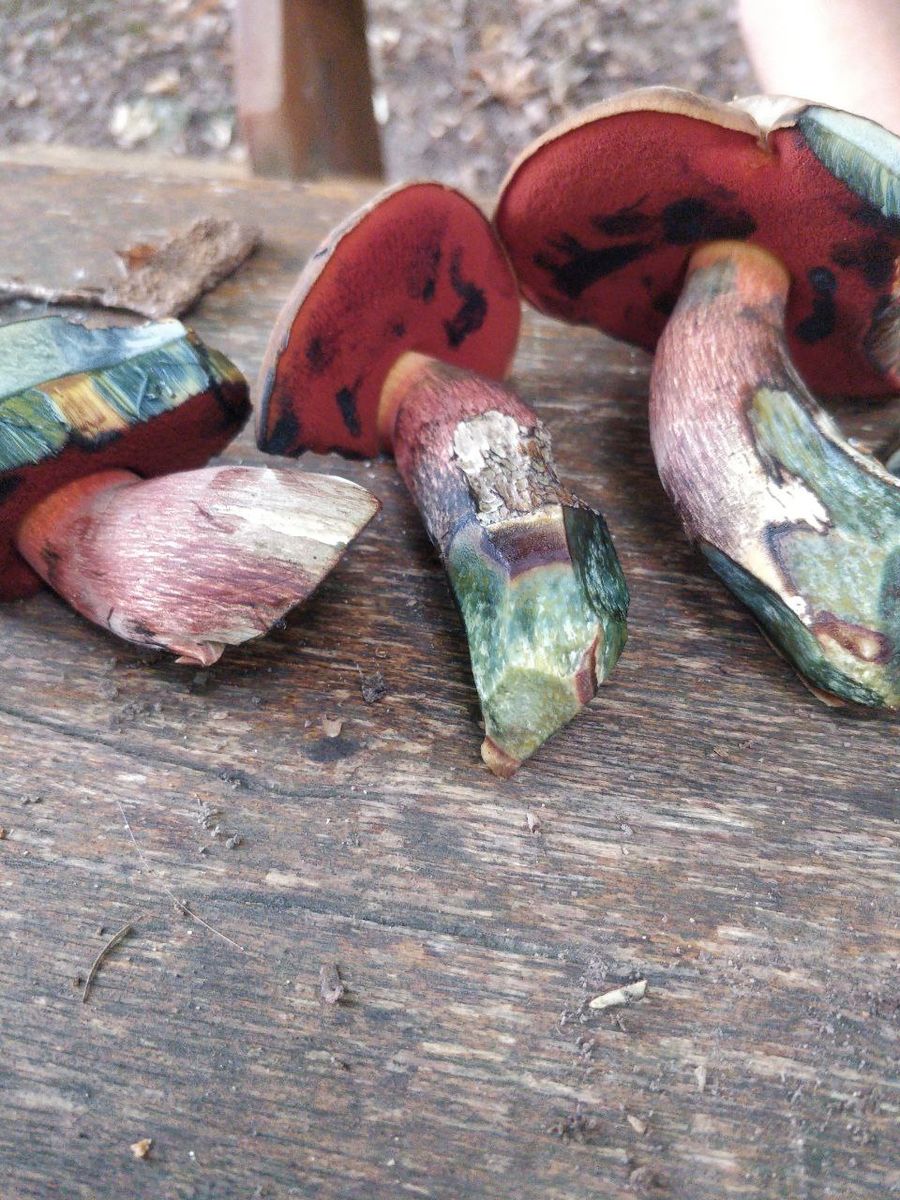 ich hab im Buchenwald diese Pilze gefunden, dachte es sind flockenstielige Hexenröhrlinge. Beim Putzen hab ich dann genau geschaut und gesehen, dass es nicht so richtige Flocken sind und der Hut auch etwas heller sind als bei denen die ich sonst gefunden habe. Fleisch wird schnell blau. Was denkt ihr?