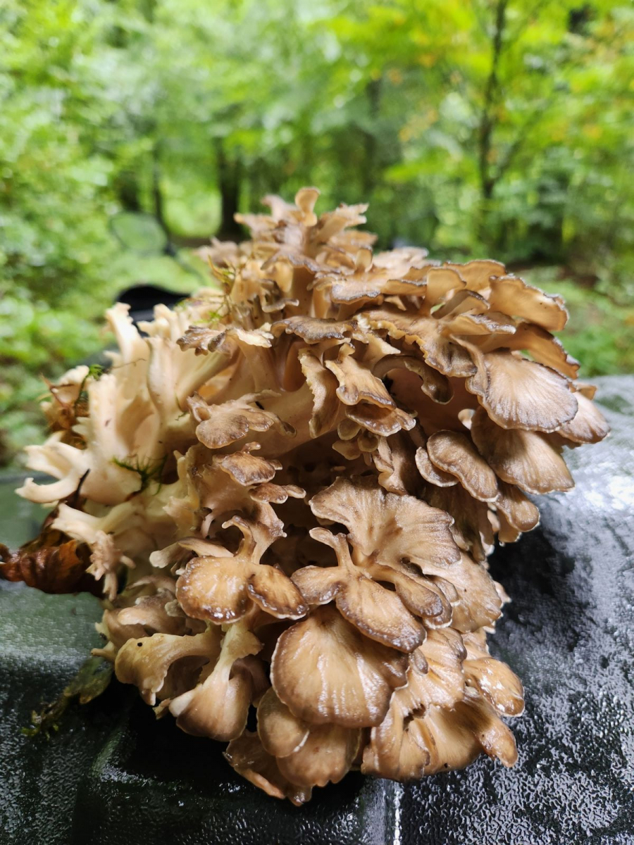 erste Vermutung Grifola frondosa , aber kann diese Art an Baumszumpf wachsen ? Leider nicht Optimale Bild und wenig Beschreibung
