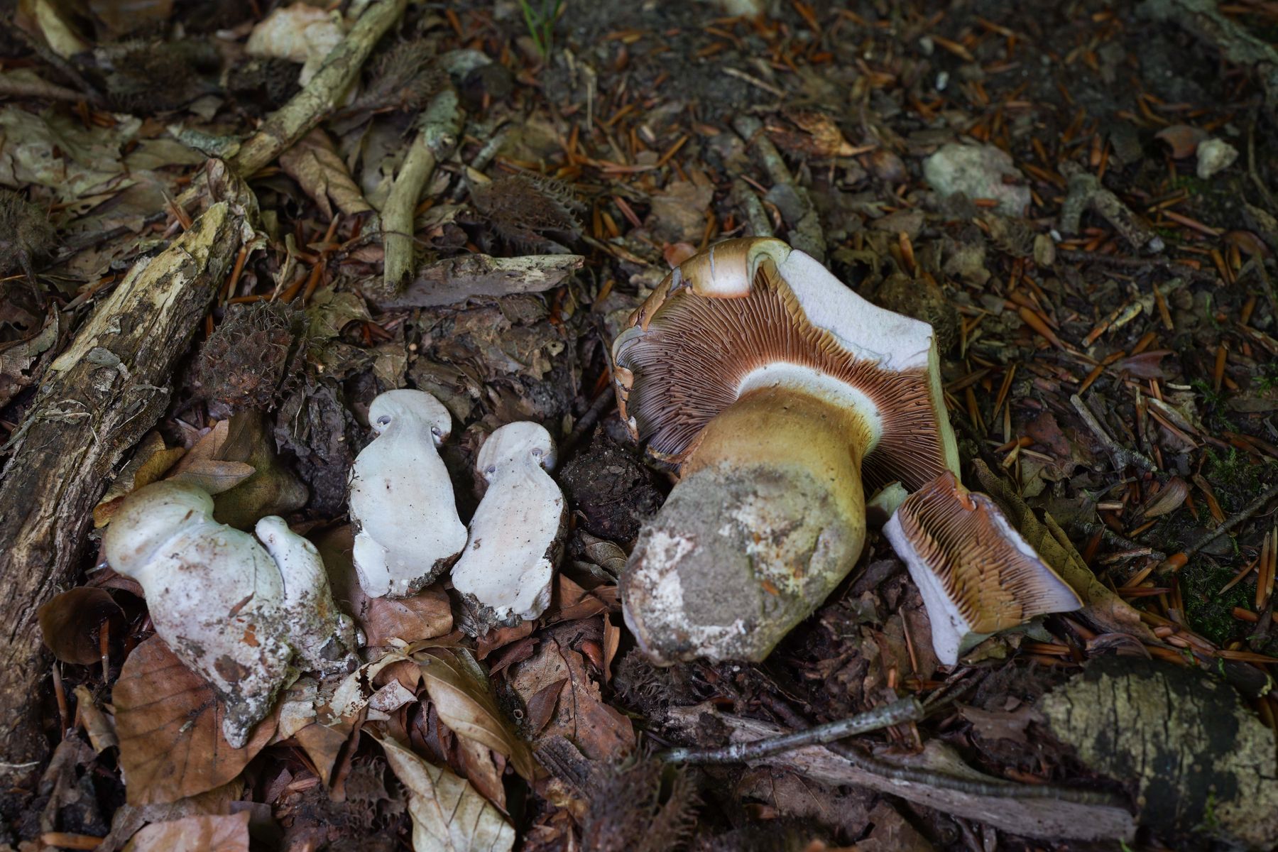 Ich habe nochmal 2 Screenshots, wo die Hutfarbe des größerem FK vllt besser sichtbar ist und 2 Bilder mit frischer sowie daneben 3 min alter KOH 20% Reaktion angehängt. Vllt hilft das für eine bessere Einschätzung.