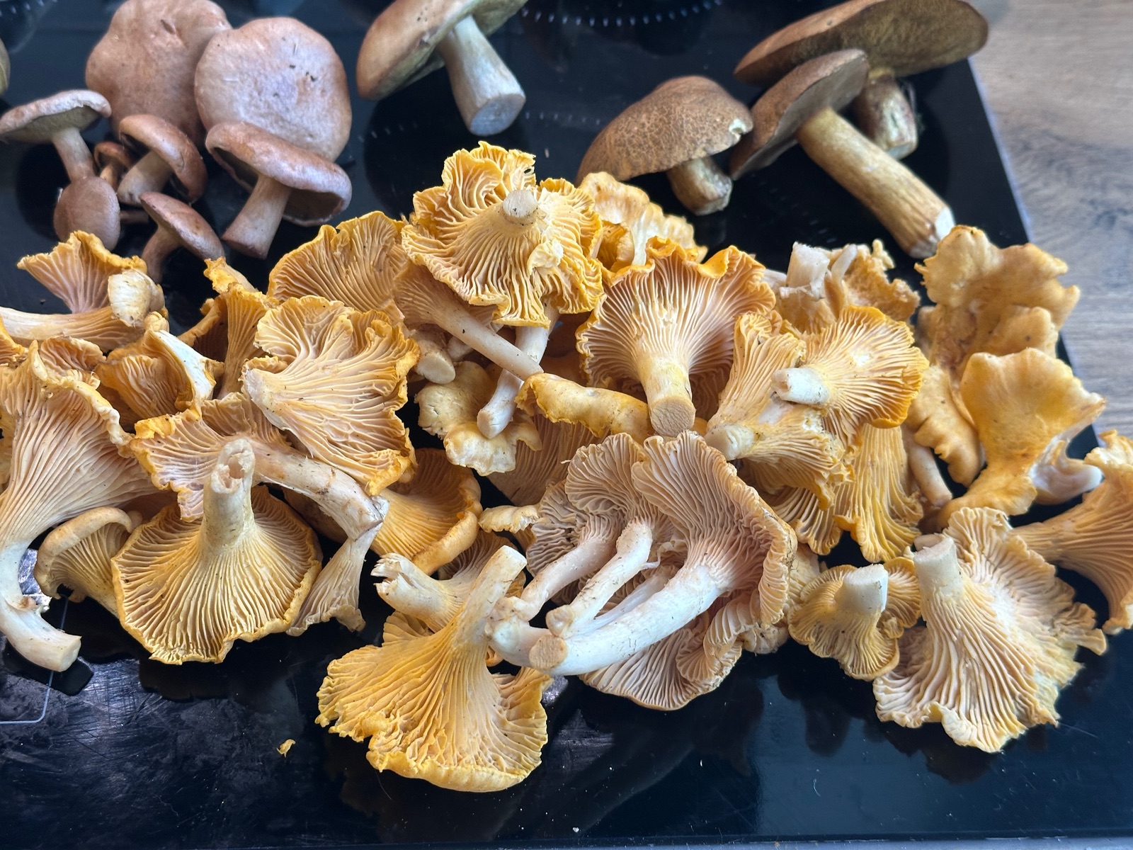 Das war heute mal wieder eine Schöne drei stündige Vormittags Tour in unsere relativ neu erschlossenen größte Fläche wo wir Steinis, Pfifferlinge , Maronen Falsche Rotkappen generell verschiedene Kappen und ohne Ende Kuh , Sand Röhrlinge etc sammeln.