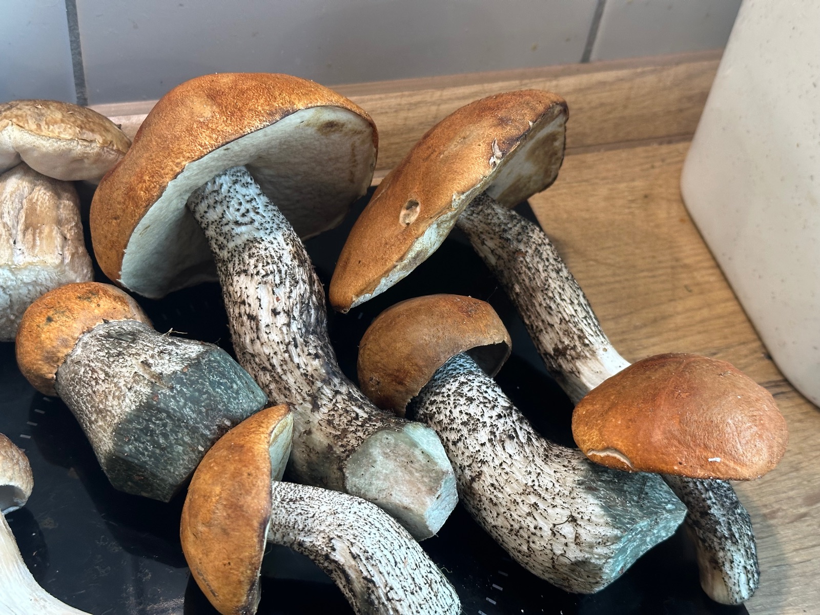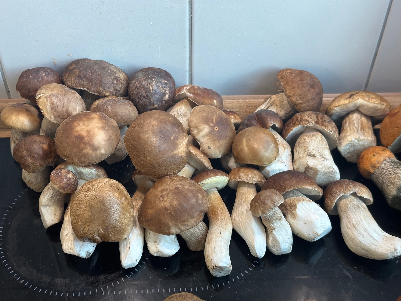Trockne die ganzen Tage schon Mengen an Steinpilzen Falschen Rotkappen und Sandröhrlinge.