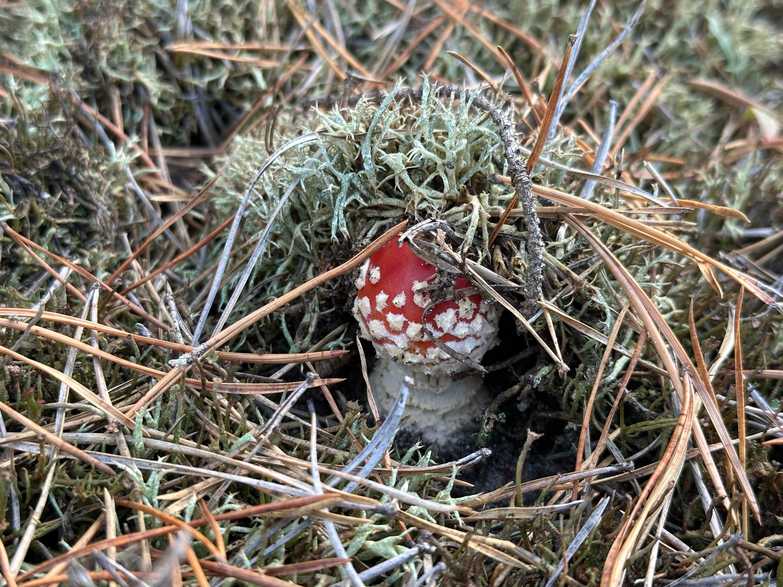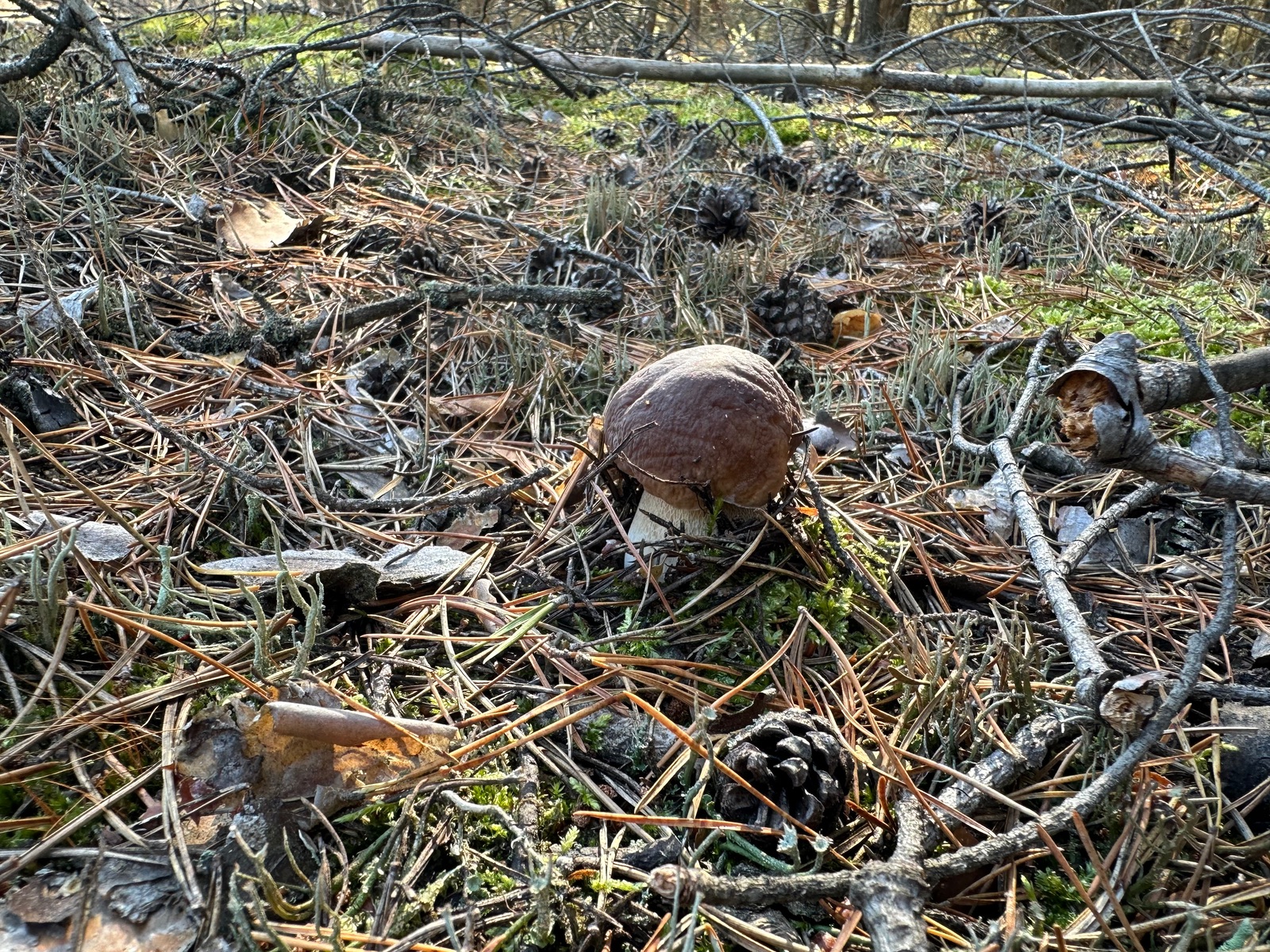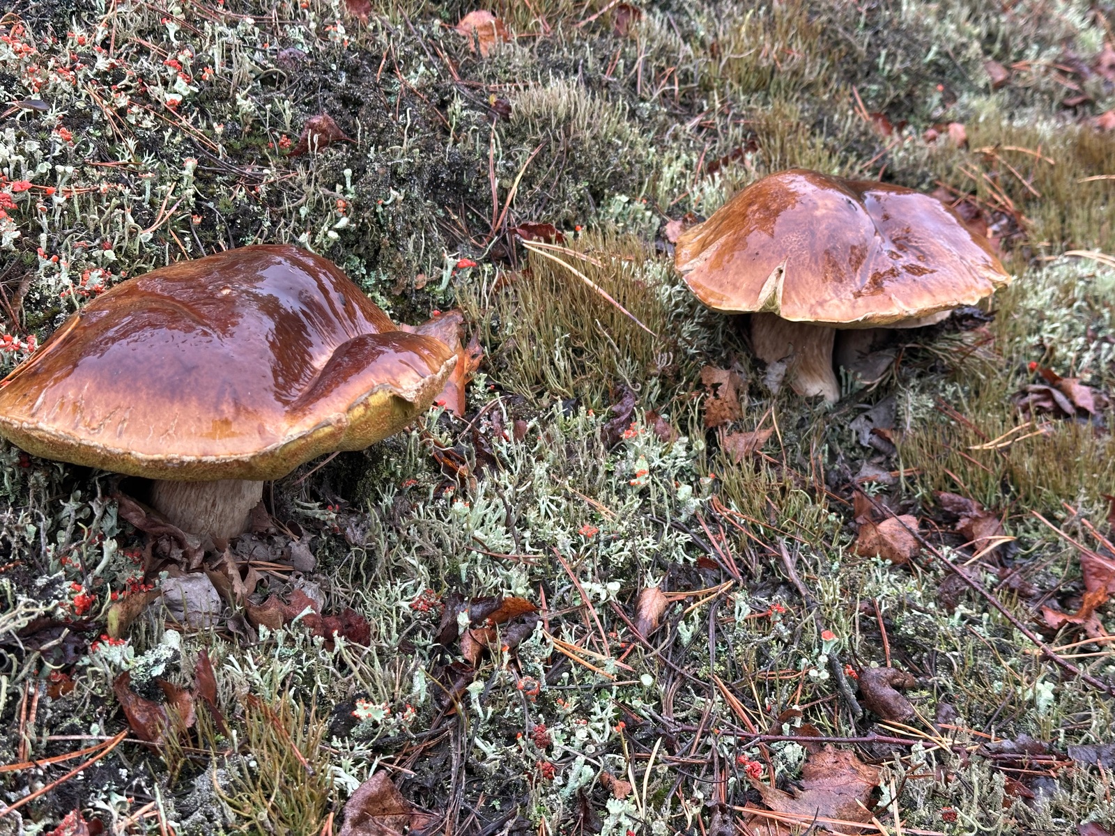 Speziell an der Stelle wo die Kornblumenröhrlinge Stehen . Ist es weniger Moos bedenkt sind eher mehr Flechten , sandiger Kalkboden vereinzelnd Fichten und Birken Pilze die direkt nebenbei standen waren