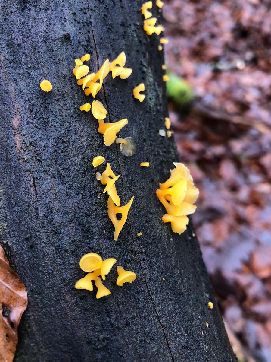 Wuchs auf einem Baumstumpf, leider war für mich nicht erkennbar ob Nadel-/Laubholz. Riecht süßlich.