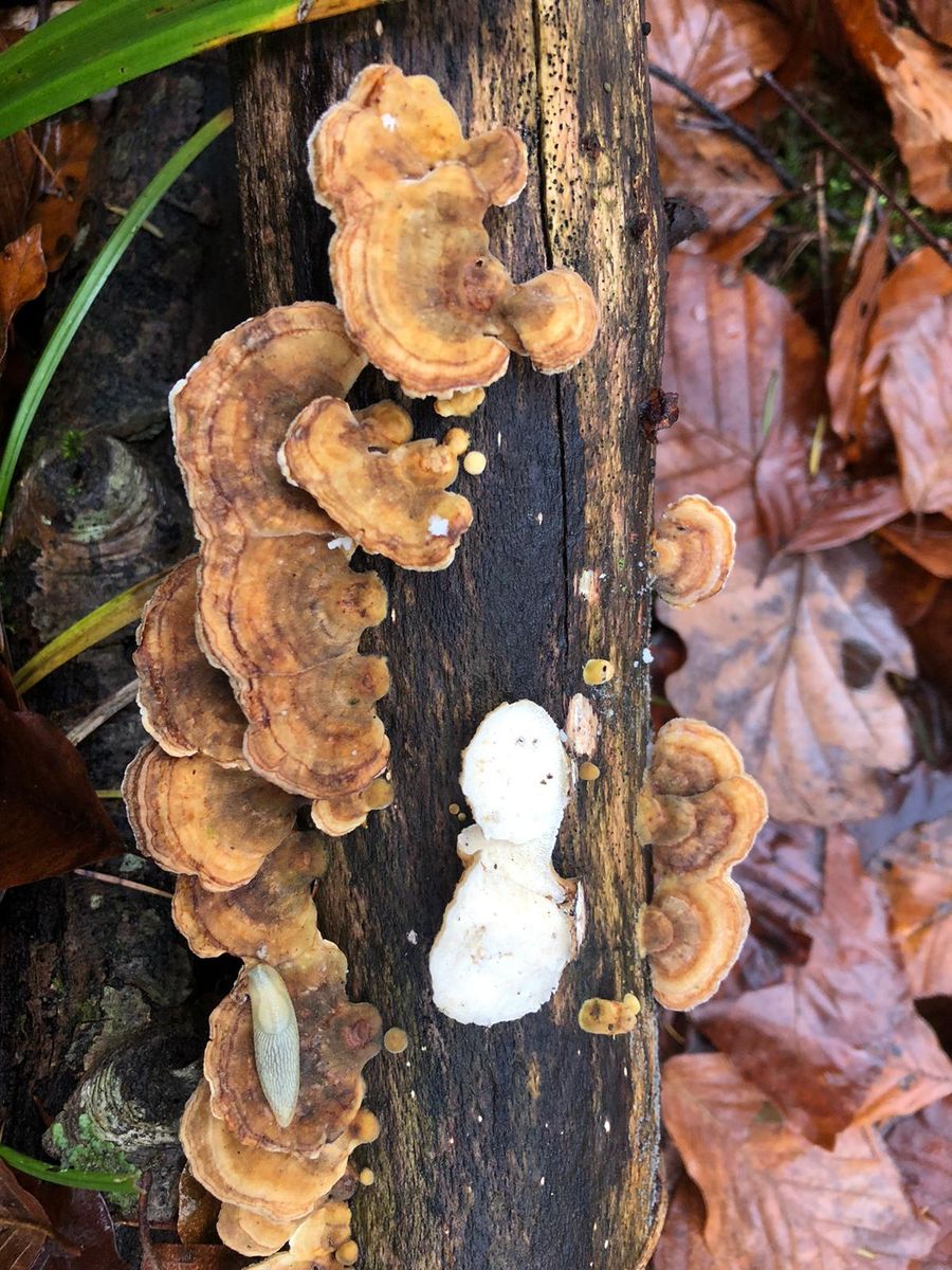 Auch die vorderen Fruchtkörper hatten die gleiche Farbe wie die weiter hinten, leider war das mir nicht möglich besser zu fotografieren.