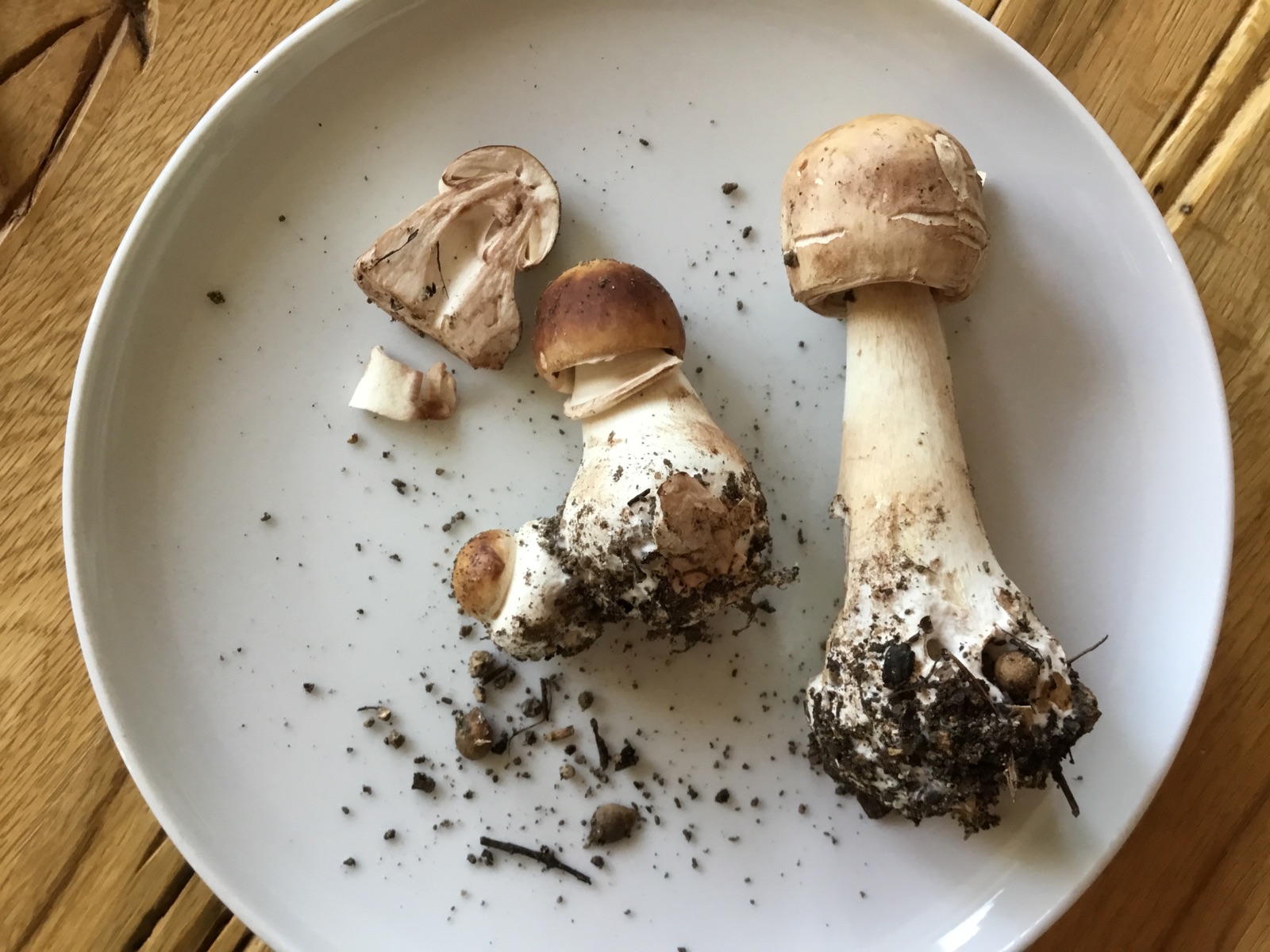 Wer kennt den? Schwammerl3 14. Oktober 2025 Soeben hinter meinem Kompost gefunden. Dachte zuerst ein Steinpilz, hat aber Lamellen. Beim Anschnitt Fleisch ganz weiß, läuft dann Rosa an.