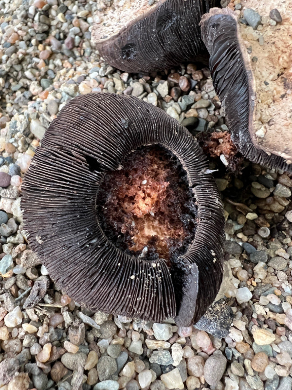 • dunkelbraune, samtig wirkende, fast schwarze Lamellen