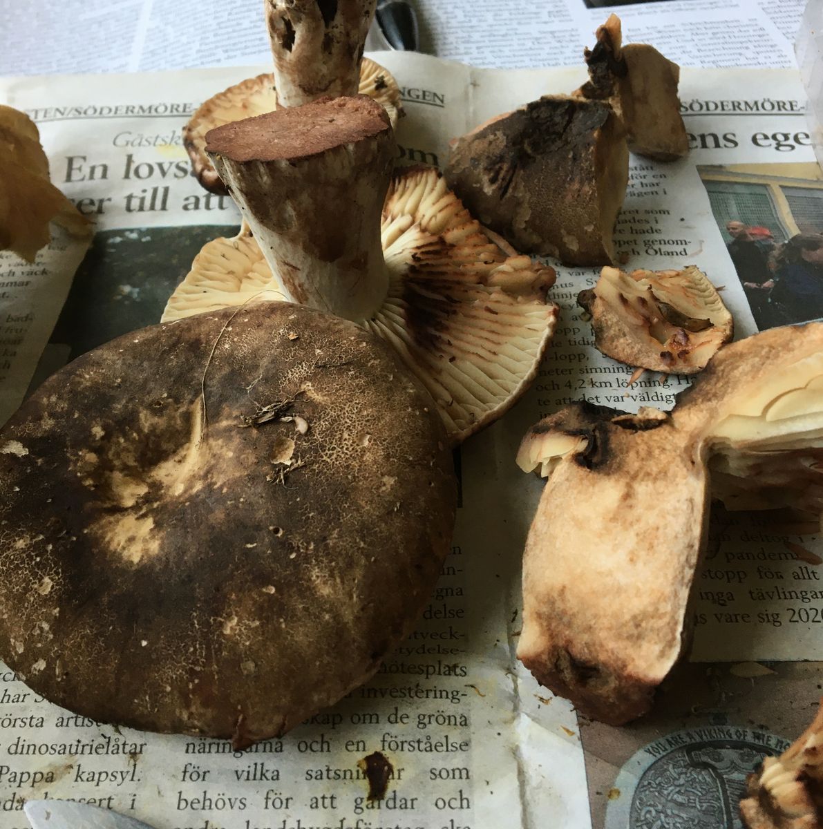 Fundort in lichtem Tannenwald mit viel Moos und Steinen, Trompetenpfifferlingen (trattkantarell) zuhauf und auch Schafpoprling (fårticka). Tschüsz!