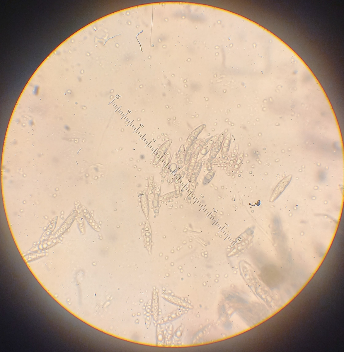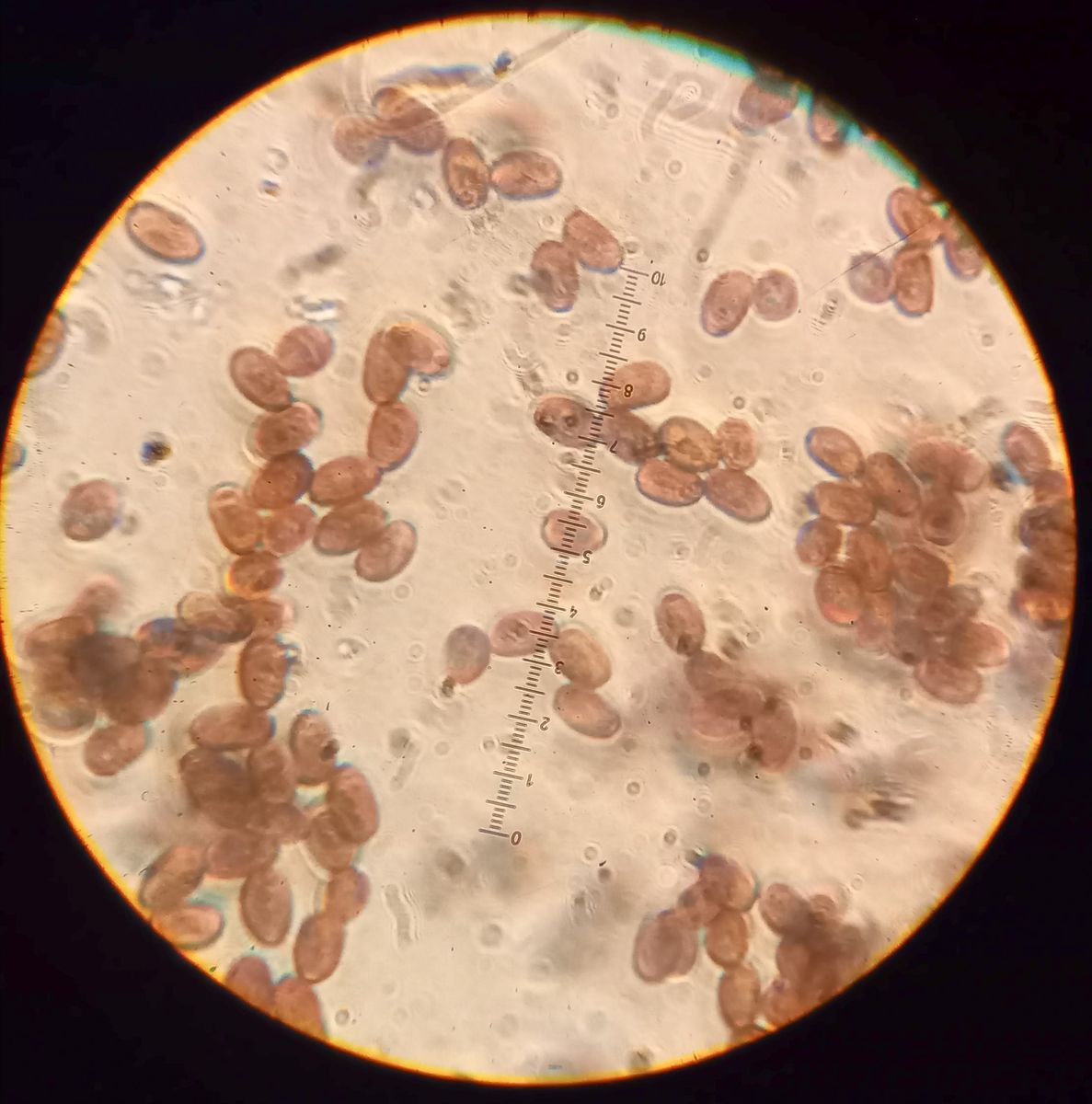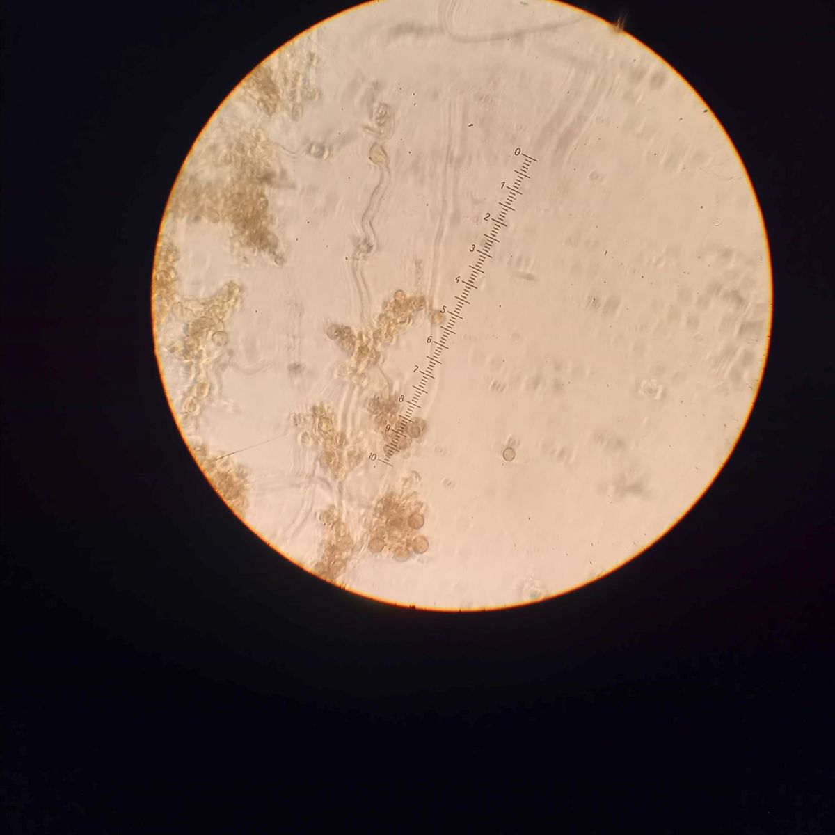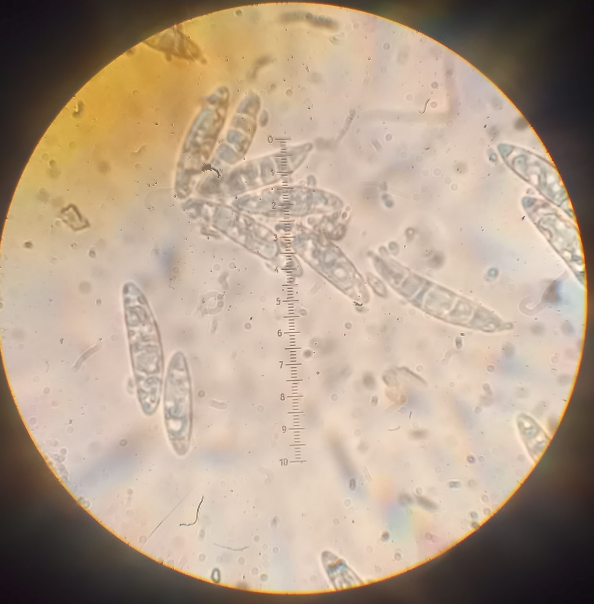 Nachdem vor kurzem über Entyloma ficariae und Peronospora ficariae berichtet wurde, habe ich heute nachmittag im Kottenforst bei Bonn mal bei dem reichlich vorhandenen Scharbockskraut nachgeschaut und etwas gefunden, von dem ich nicht weiß, was es ist. Der braune Parasit war beidseitig auf den Blättern zu sehen (siehe Fotos). Die Sporen oder Konidien sind sehr variabel länglich zwischen 14-16 x 6-7 Mikrometer bis rundlich 10-12 Mikrometer und vieles dazwischen (siehe Fotos). Hat jemand eine Idee, was es sein könnte?
