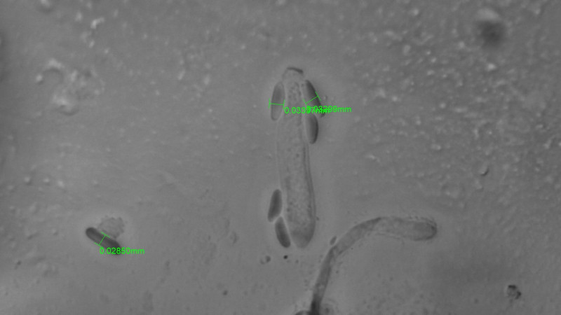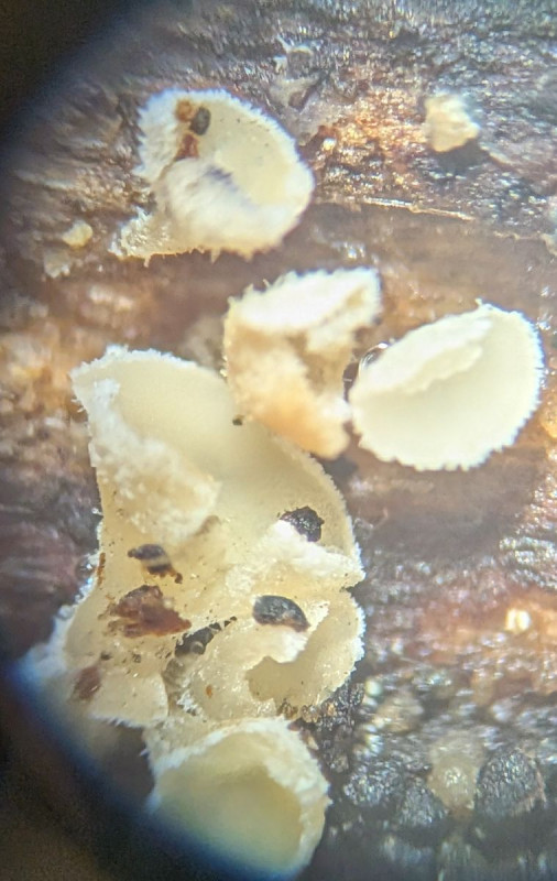 Weichbecherchen Markus123 Vor 3 Stunden Guten Tag,ich fand diesen Pilz auf dem Stumpf einer Weide anfang Januar.Die länge der Sporen ging bis 8,0 mikrometer und die breite bis 4,3 mikrometer.Hat jemand eine Idee ?