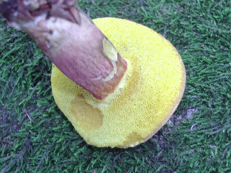 Die Hutfarbe wird am Bild gut dargestellt, die Poren sind sehr fein und werden durch meine Kamera kaum sichtbar, das weiße Fleisch gilbt gelblich nach Druck, der Geruch ist unauffällig, nach Pilz halt.