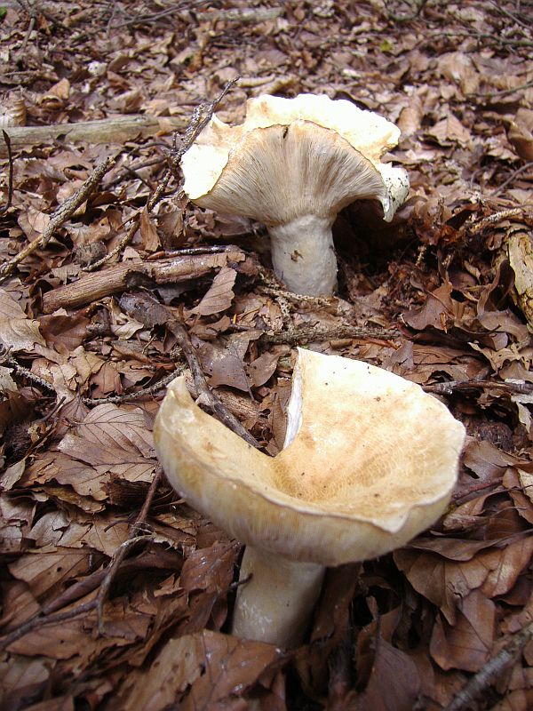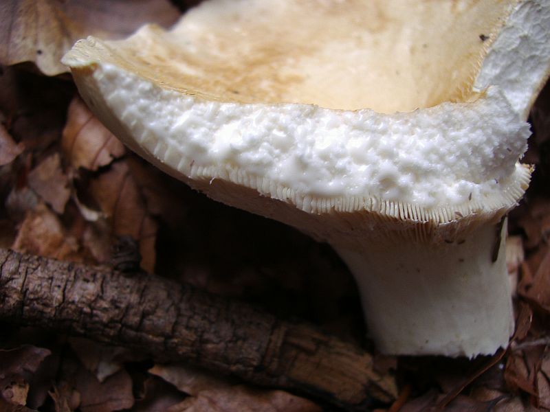 Die weißen Pilze hatten Hutdurchmesser von ca 10-15 cm, der Stiel bricht eher käsig (sagt man doch so oder?) und bei Verletzung kam ein weißer Milchsaft raus
