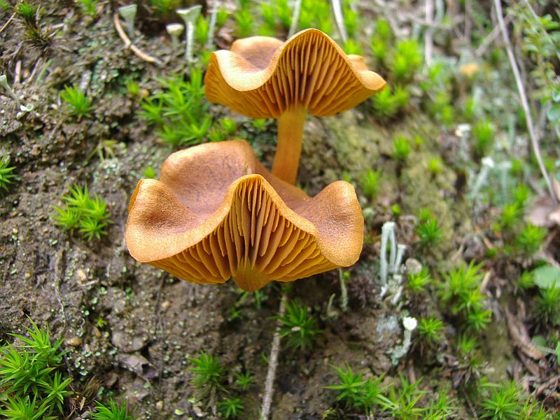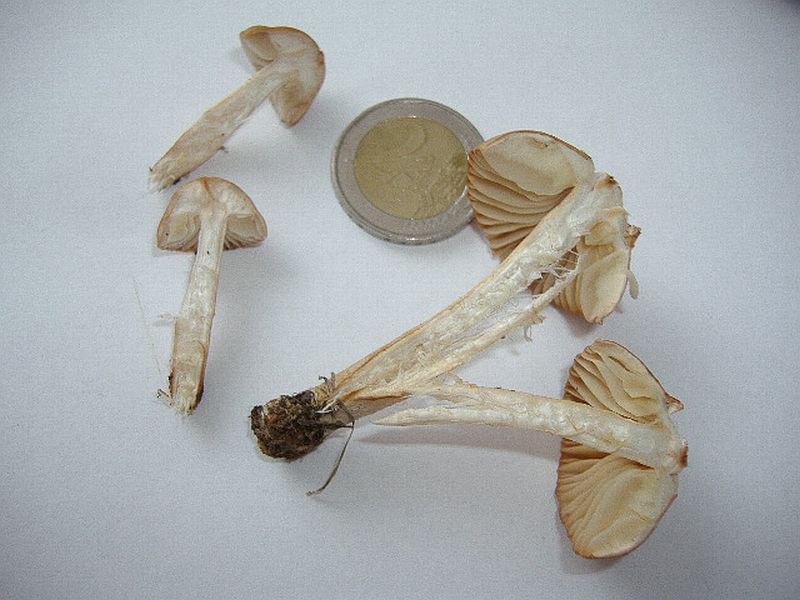 Beim orangenen Exemplar dachte ich zuerst an einen Ölbaumtrichterling, aber die Lamellen verlaufen irgendwie anders, beim weißen fehlt mir zum Knollenblätterpilz einfach die Knolle