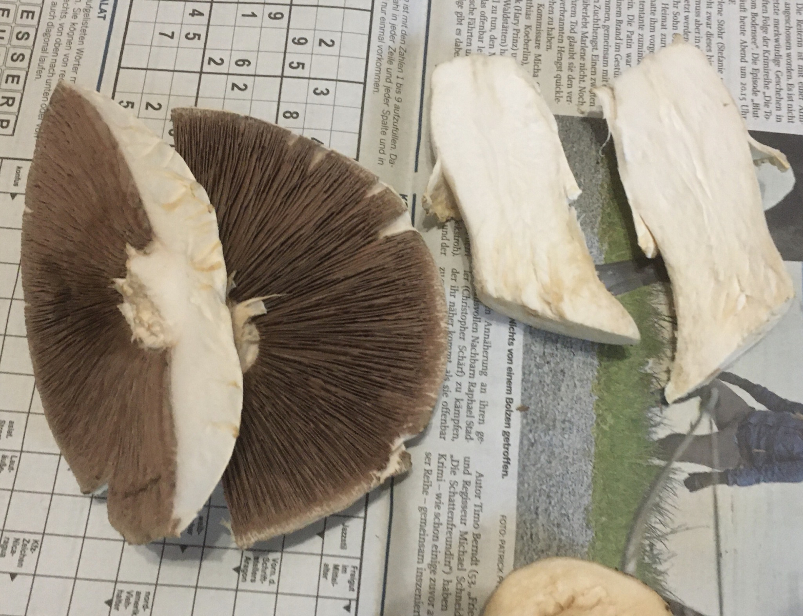 ich habe mit meiner Frau und Kindern die Pilze gesucht, nachdem der eine blau angelaufen ist und die anderen nicht, habe ich mich dafür interessiert, ich hatte die Pilze separat bei meiner Frau deponiert.