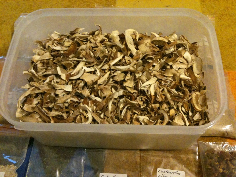- knackig trockene Pilze ( frisch aus dem Backofen, 60 ° Umluft mit Kochlöffelspalte etc.)