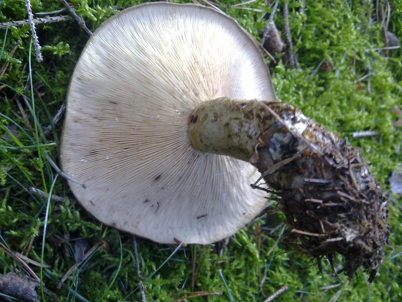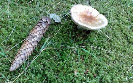 neben den ersten Maronen, die überraschend in unserem Kieferngehölz die Köpfe rausstrecken, beeilen sich auch andere Pilze, die ich leider nicht zuordnen kann. "Zu hell zum essen" und "mit Lamellen, also stehen lassen". Das sind die vielleicht richtigen aber sicher laienhaften Bemerkungen, die ich gehört habe. Kann mir jemand die Pilze bestimmen? Der Pilz, der mit Zapfen aufgenommen ist hat einen Kopfdurchmesser von ca. 8 cm, andere werden noch größer. Darunter auch der, den ich dann "von unten" aufgenommen habe. Der etwas rundere scheint der selbe Typ zu sein, nur unmittelbar "vor dem Schlüpfen"... Hat jemand einen Tip?