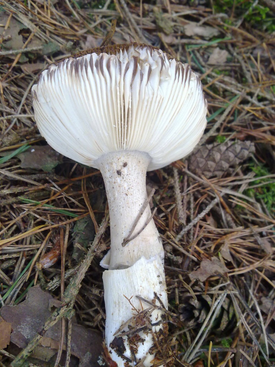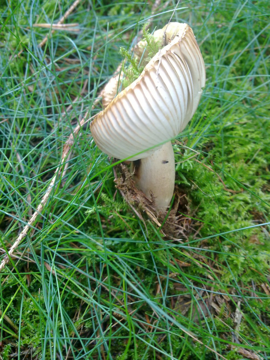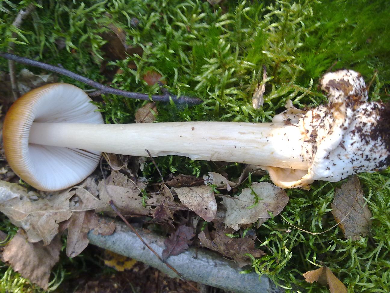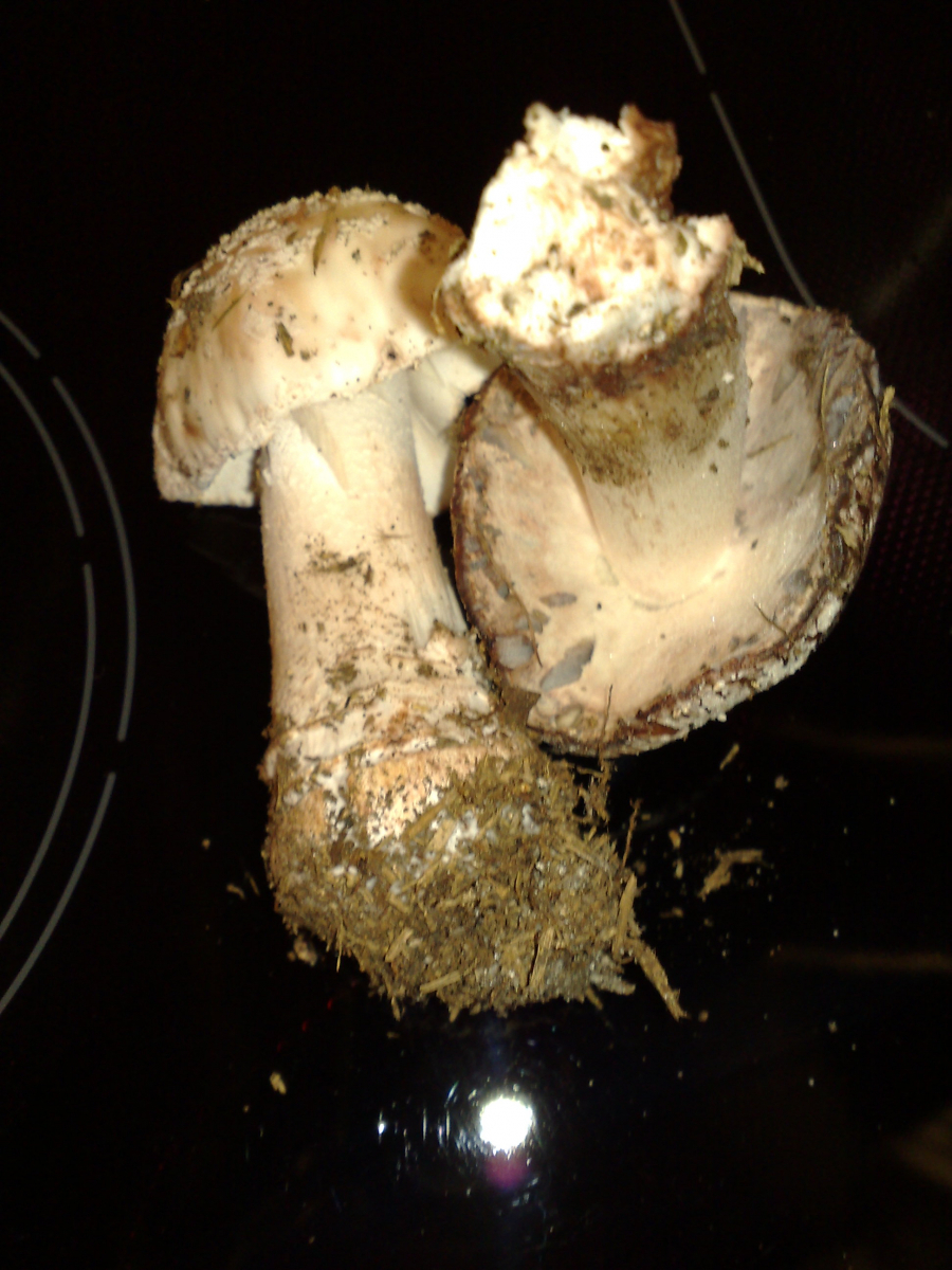 sieht für mich nach Perlpilz aus bei dem die Schuppen schon abgewaschen sind.