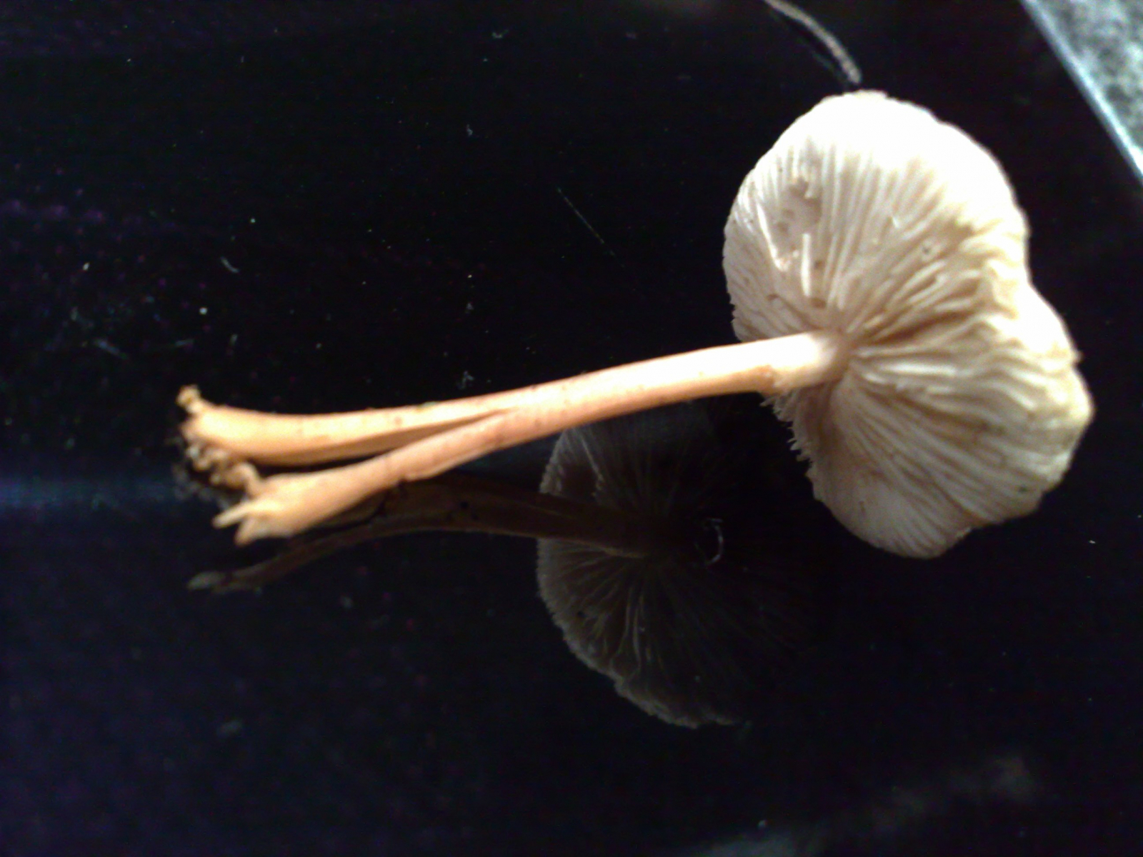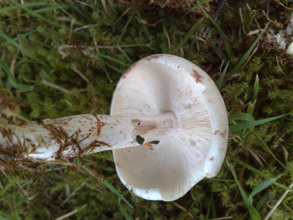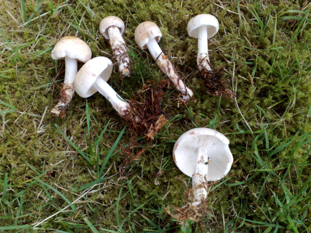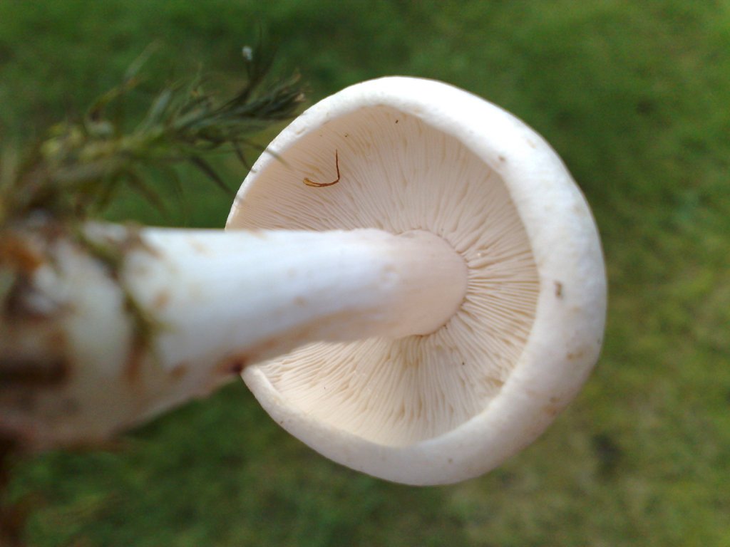 Von der Farbe her fast wie Champignons, wie man sie im Laden kauft. Der Stiel jedoch deutlich dünner und länger, dafür aber keine Manschetten wie bei den Perlpilzen, die ich hier eingestellt hatte. Lamellen sehr zart, der Hutring völlig glatt. Der größte Pilz hat ca. vier cm Durchmesser im Hut.