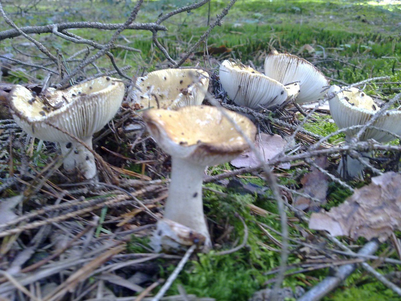 Insbesondere die fast weißen sind in größeren Gruppen gewachsen, direkt am Wegesrand / Feldrand im Gras. Die Grauen im Moos in Fichtenwaldnähe