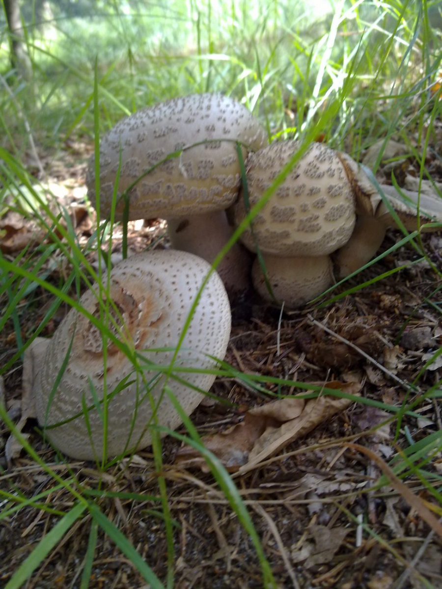 danke für die Rückmeldung. Aber ich glaube nicht, dass es ein Perlpilz sein kann. Diese hier haben keinerlei Manschette, auch sind die Schuppen eigentlich nie zu sehen (außer bei dem einem Bild). Auch scheinen mir die Lamellen dicker als beim Perlpilz.