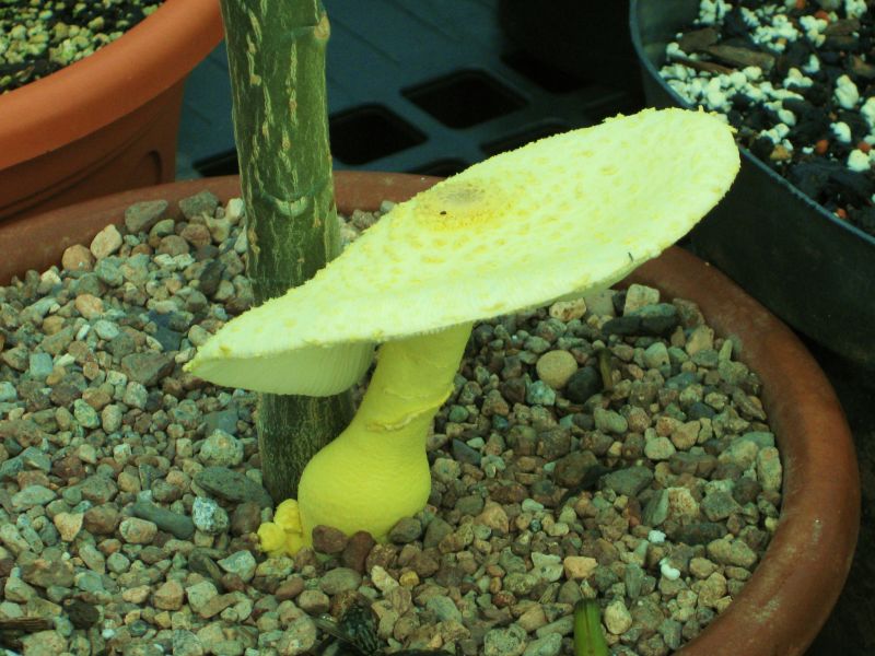 Ich habe heute in meinem Gewächshaus,in einem Blumentopf,einen Pilz gefunden.