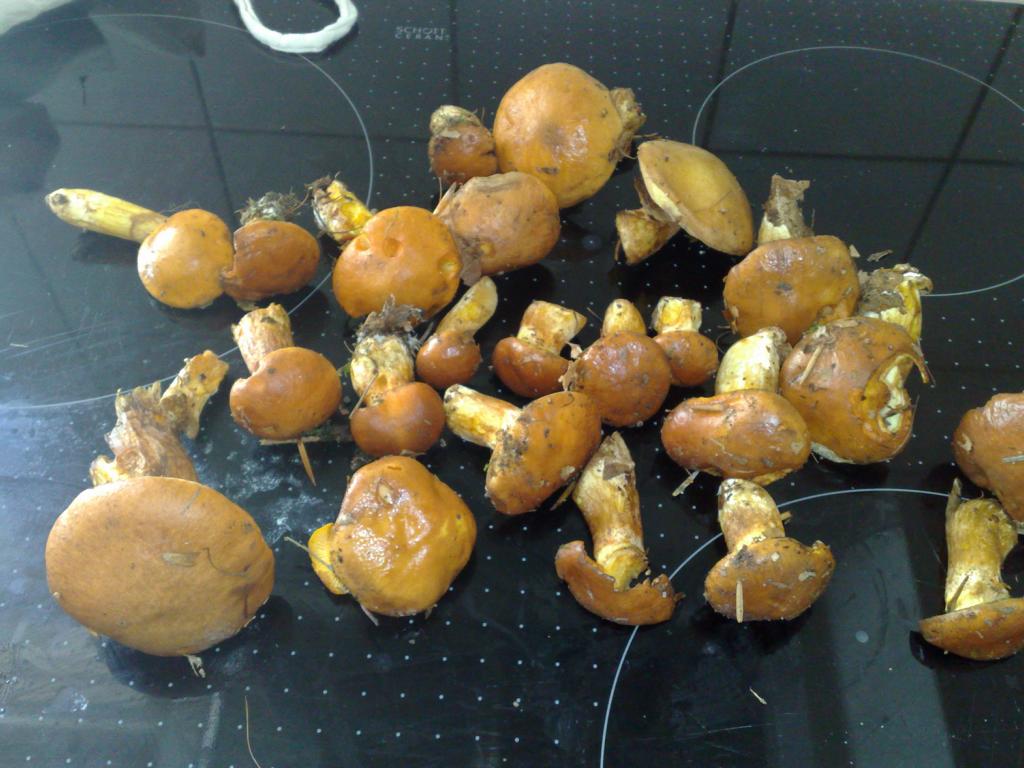 5. Hexenröhrlinge, und zwar die Flockenstieligen. Entschuldigt die Fotos. Aber ich hoffe ihr erkennt irgendwie die Zeichnung. Sie ist bei allen Exemplaren gleich. Den Netzstieligen habe ich stehen lassen, da mir persönlich zu riskant (Alkohol etc.). Da ich vielfach gelesen habe, dass die flockenstieligen hervorragend schmecken sollen, möchte ich mich heute mal rantrauen mit dem Verzehr. Dazu gleich eine Frage: Erst blanchieren? Und weiterhin wie lange durcherhitzen? Reichen 15 Minuten. Getrennt von den anderen Pilzen oder gleich in die Mischpfanne rein? Danke für Tips!