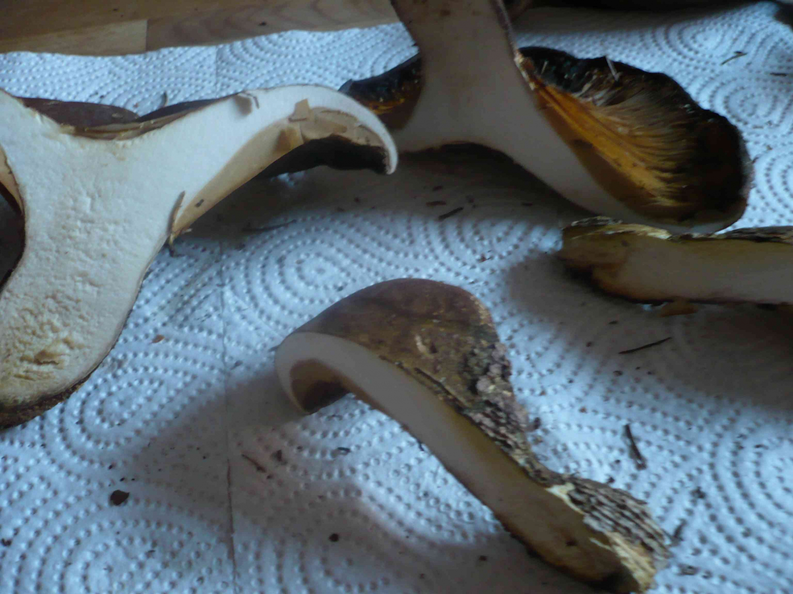 Einige wuchsen direkt neben (sah so aus als ob sie wie Seitlinge am Holz wachsen) umgestürzten vermodernden Nadelbäumen. Wurzelten aber im Erdreich), Geruch angenehm eher nussig.