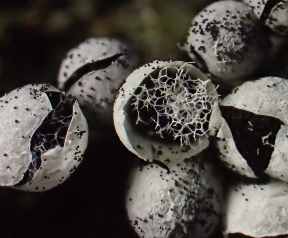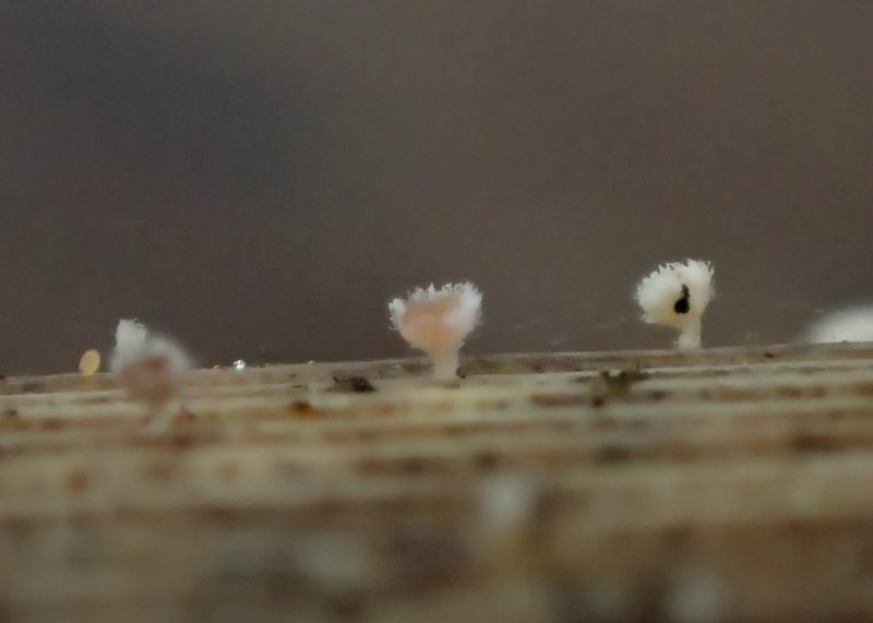 hier kommt ein Schleimpilz aus Nordwestmecklenburg, am Wochenende gefunden an liegendem Laubholz. Jetzt im Winter denkt man bei so grauweißen Kügelchen vielleicht an Badhamia utricularis, aber dafür fehlen mir die gelben Stielchen. Badhamia panicea sollte ein weißes Plasmodium haben, vielleicht affinis? Oder bin ich komplett auf dem Holzweg? Sicher weiß hier jemand mehr...