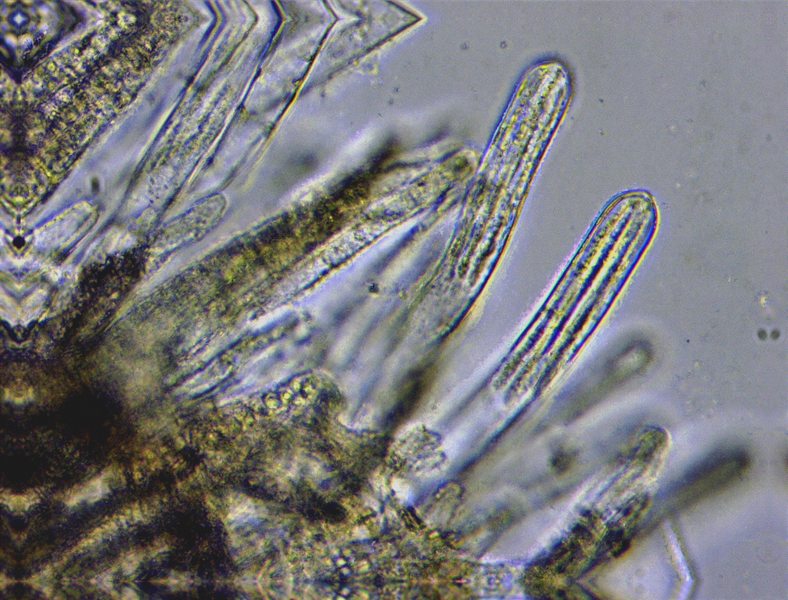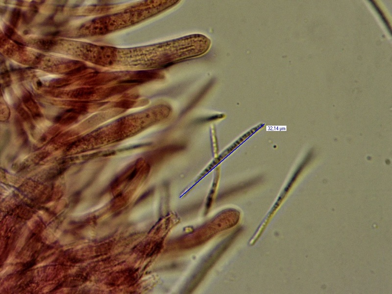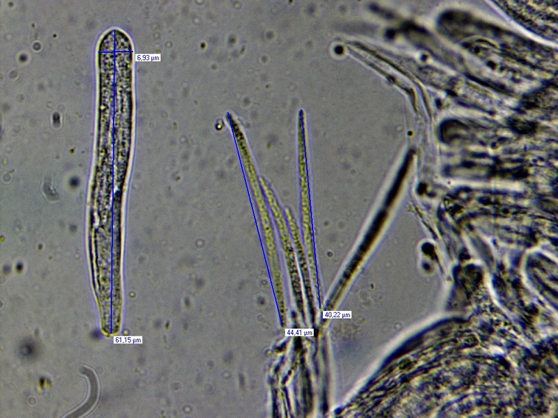 a) bezüglich der Sporen: Da habe ich sowas wie kleine spindelige Sporen erwartet (wie von anderen Dasyscyphus schon bekannt) und gar nicht an die Möglichkeit fädiger Sporen gedacht; und