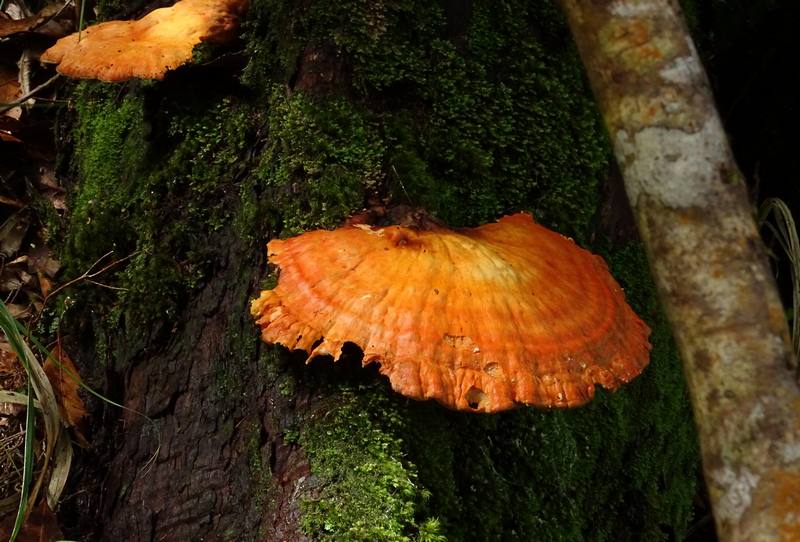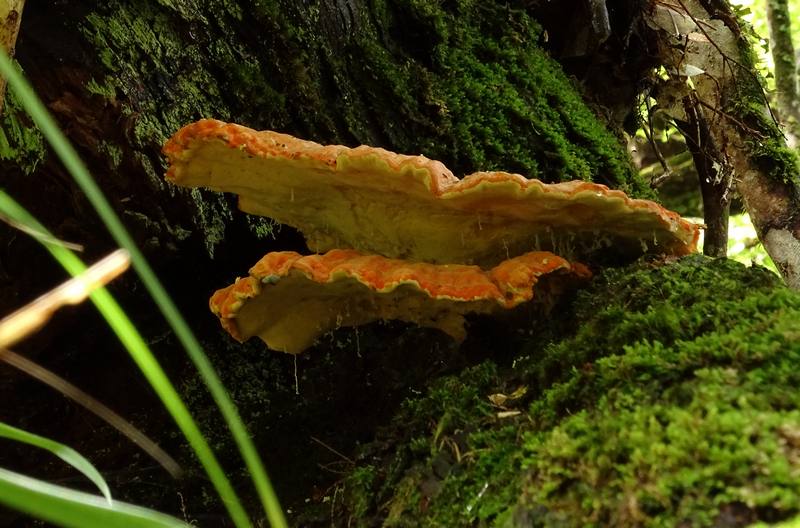 Diese sich etwas feucht anfühlenden Pilze habe ich am 23.9.2015 an einer schattigen Stelle im Lorbeerwald von Rabacal auf Madeira fotografiert. Abgeschnitten habe ich sie nicht, wir waren ja im Nationalpark! Ich habe sie erstmal als Pycnoporus cinnabarinus abgelegt, aber ich frage mich, ob es Verwechslungsarten gibt?