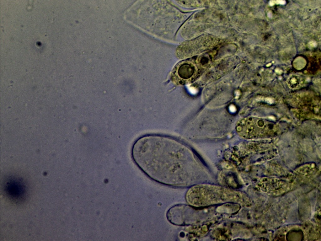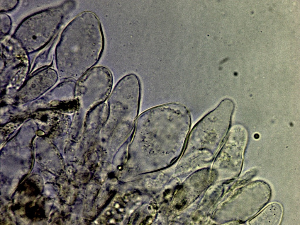An der Lamellenschneide gab es kaum Zystiden, fast nur Basidien, ich hänge nochmal ein Foto an.