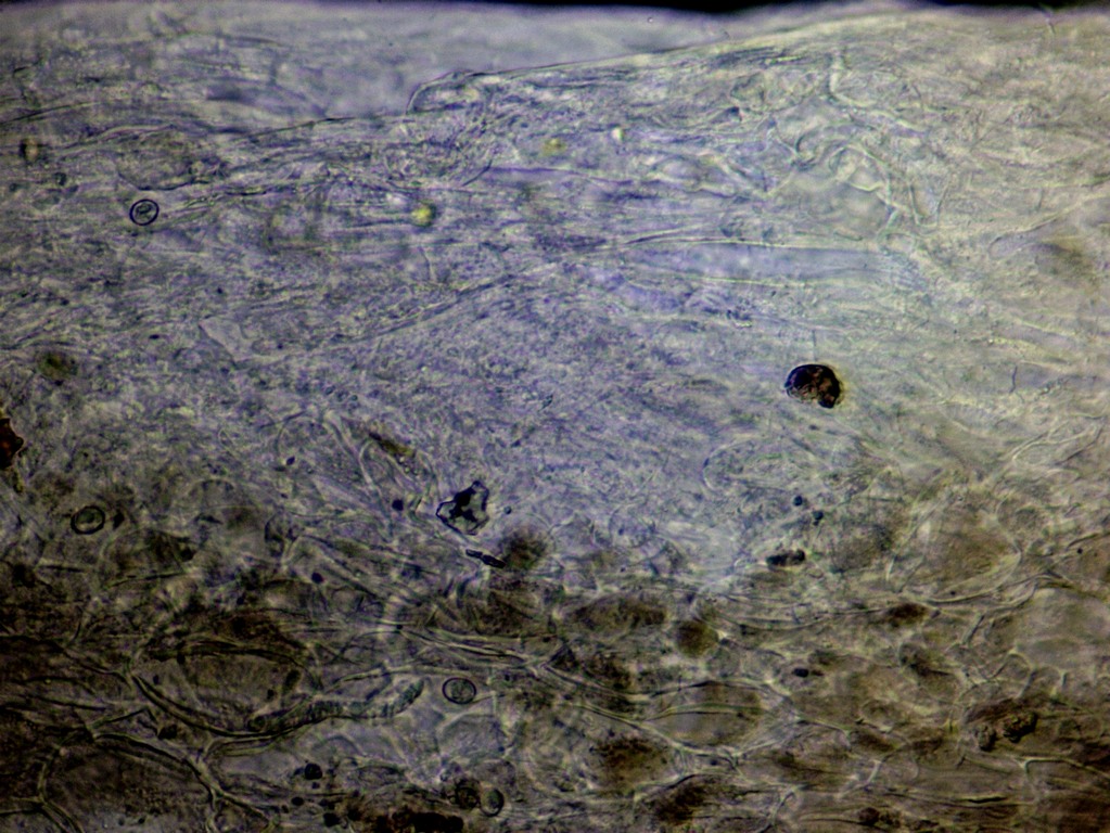 Oft ist auch die Huthaut von Bedeutung, ob aus langgestreckten Elementen oder aus kugeligen Zellen aufgebaut (oder aus einer Mischform).LG; Pablo.