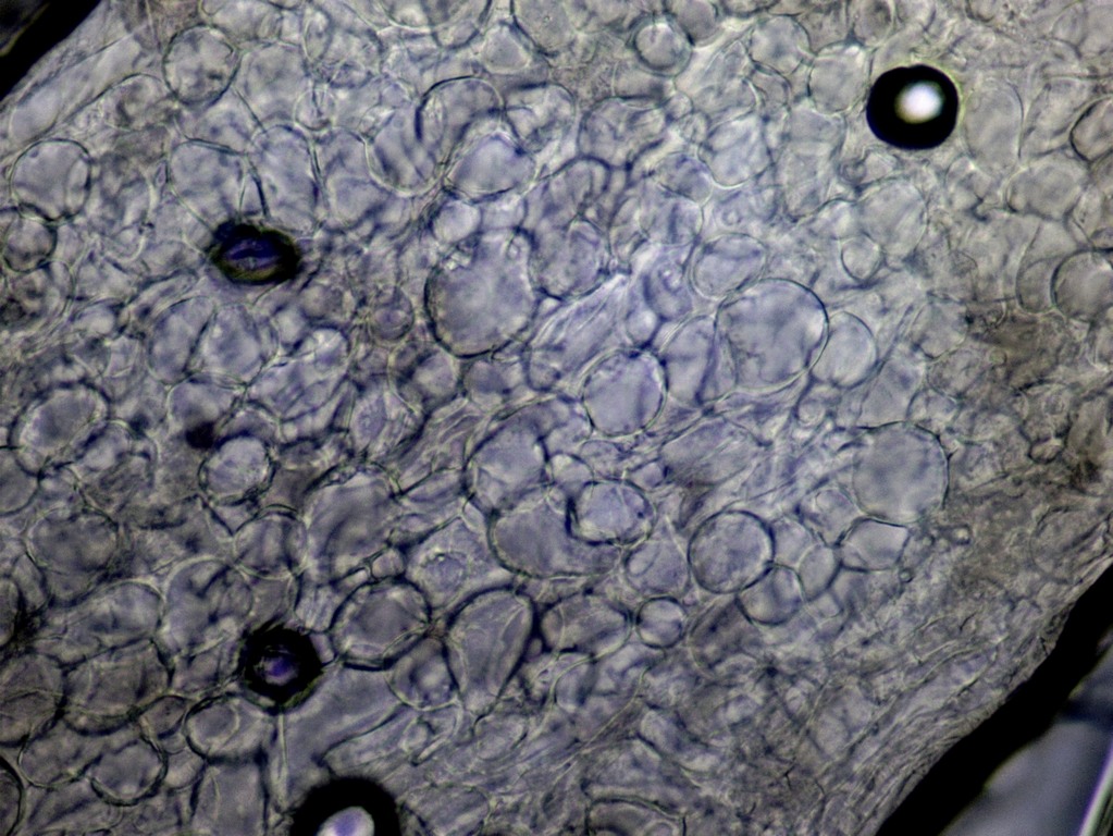 Ein schöner HDS-Schnitt ist mir nicht geluingen, was ich gesehen habe waren eine Schicht liegender Zellen und ansonsten viele kugelige, auch da hänge ich zwei Fotos an.