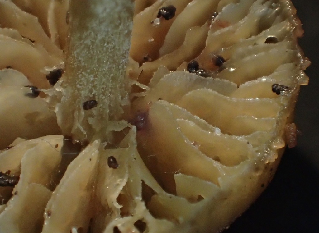 An der Lamellenschneide fett bauchige Cheilos (siehe Foto).