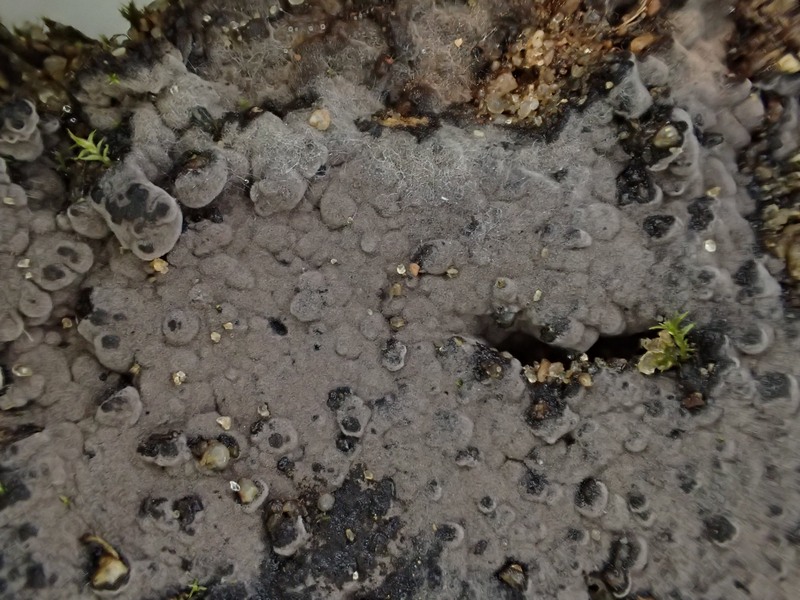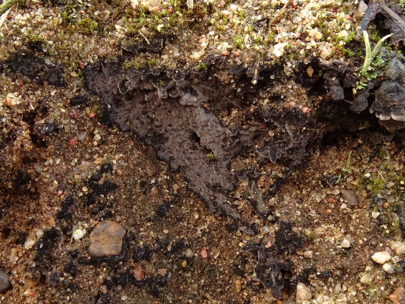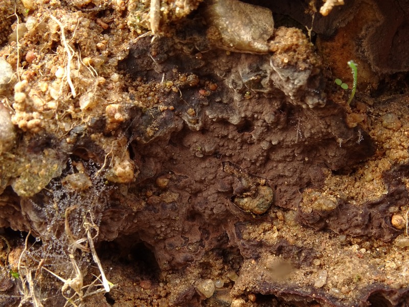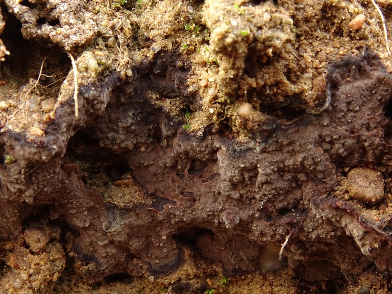 mit dieser Tomentella komme ich nicht weiter, vielleicht ja hier noch jemand eine Idee?Gefunden letzte Woche in einer Kiesgrube in Mecklenburg, auf sandig-lehmigem Boden wachsend, Bezüge von oft mehr als Dezimetergröße, aus Distanz grau-rotbraun bis schwärzlich wirkend, bei näherem Hinsehen mit filziger Oberfläche. Wachstum meist an senkrechten Stellen, also vertikal.