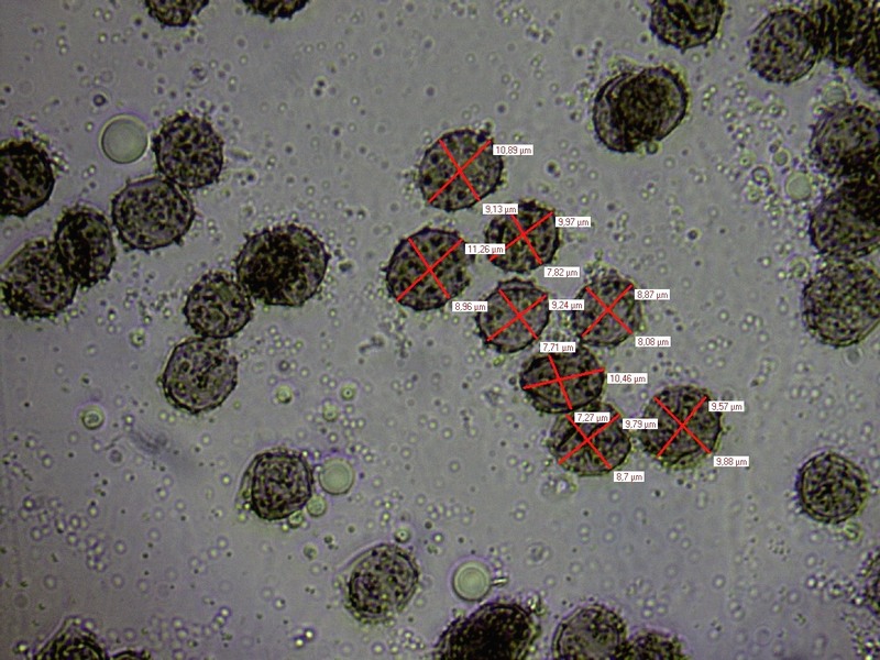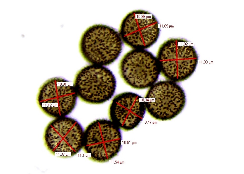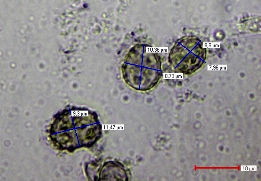 Meine heutigen Sporen waren 8,9-11,2 x 7,7-9,6 µm. Nochmal 2 Fotos anbei.