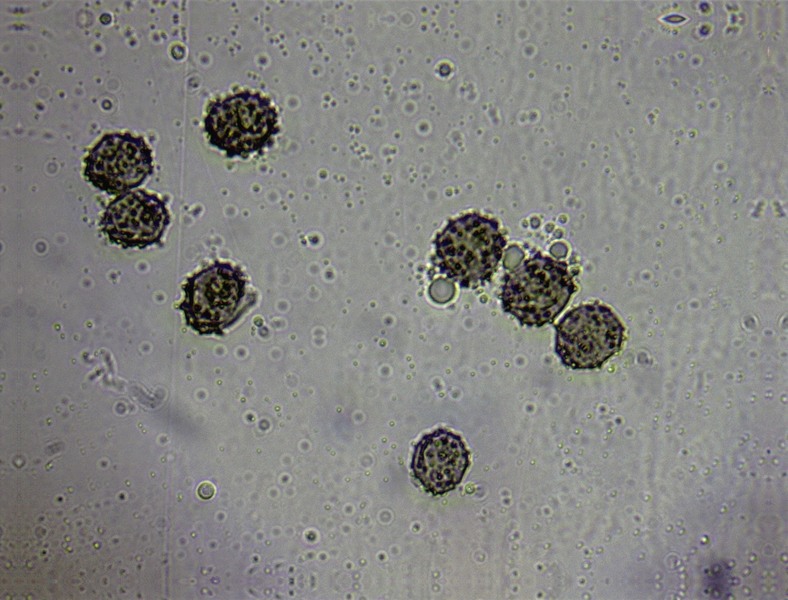 << ...Beim nächsten Badhamia-Fund solltest Du beim Mikroskopieren eventuell auch darauf achten ob die Sporen in Klümpchen zusammenhängen. >>