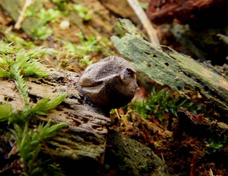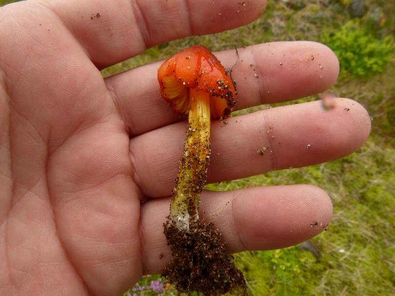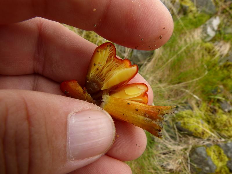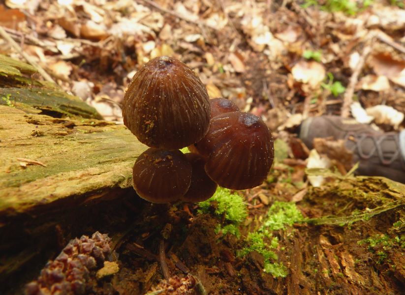 Dieser Pilz maß 2,8 cm im Hutdurchmesser, der Stiel war sehr elastisch und wollte einfach nicht brechen. Die Huthaut wirkte feucht, was aber auch am vorhergehenden Regen gelegen haben kann.
