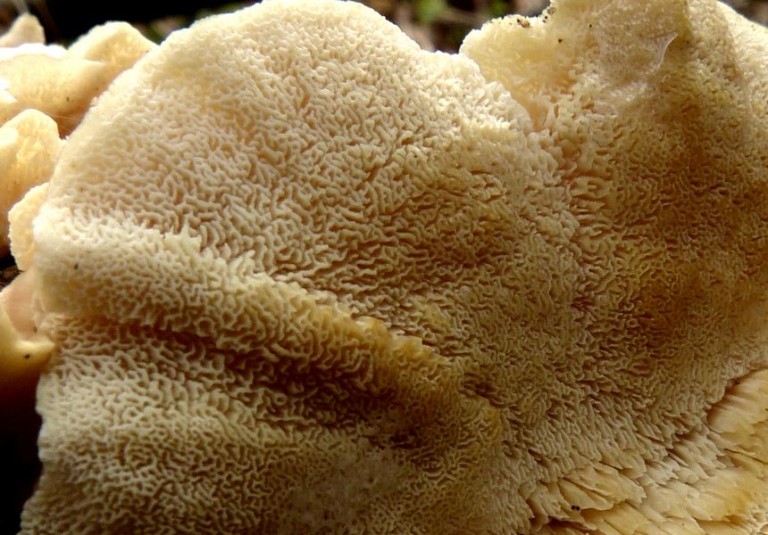 Später fanden wir noch bis 8 cm große, völlig verwaschene und vergehende Exemplare mit ebenfalls herablaufenden Lamellen, die vielleicht zur gleichen Art gehören könnten.