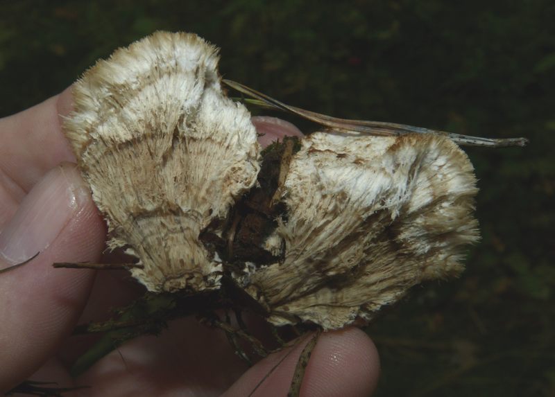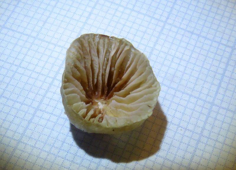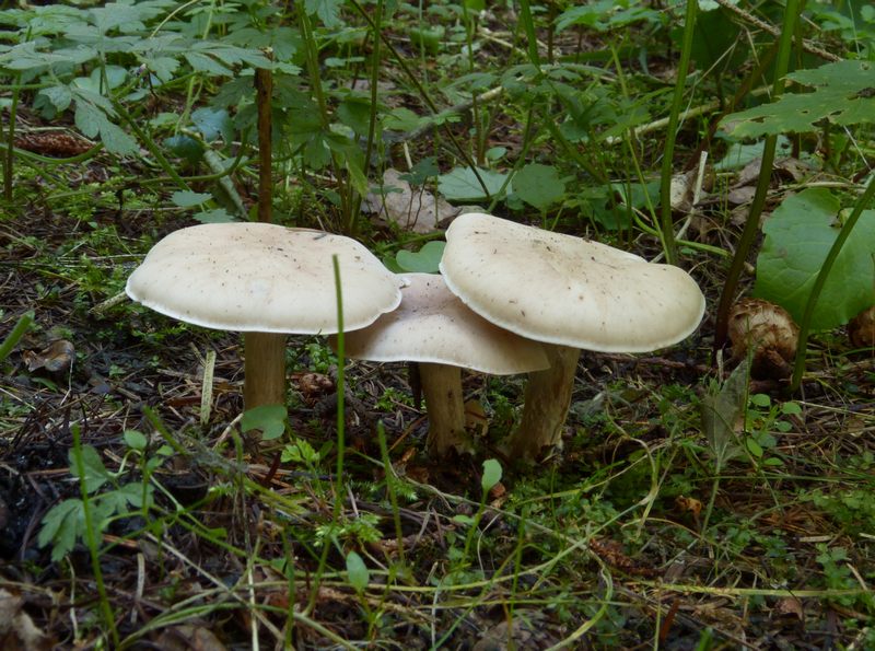 Hüte trichterartig vertieft, Größe bis 15 cm, hell beige und ganz leicht gezont erscheinend, Stiel dick - siehe Fotos.