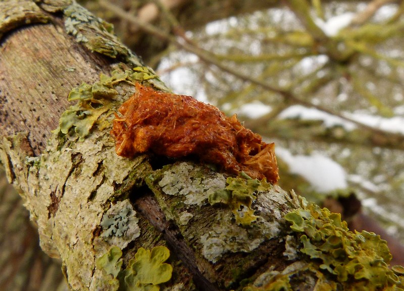 Zum Substrat: Leider war es nur ein niedriger Baumstumpf, sonst hätte ich das Substrat genannt (kaum zu glauben, aber vollständige erwachsene Exemplare von Lärche und Kiefer kriege selbst ich im Winterzustand erkannt!). Unmittelbar darum herum standen Europäische Lärche und Waldkiefer, daher nannte ich als mögliches Substrat Lärche, aber wenn ich's recht bedenke war die Rinde doch eher leicht rötlich und daher wäre KIEFER schon die richtige Wahl.