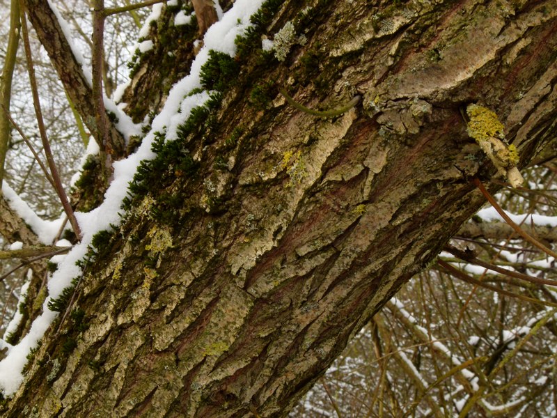 lg björn[hr]Hallo, also Bäume im Winterzustand sind meist ein echtes Rätselraten für mich, aber warum keine alte Weide? Die haben doch ziemlich rissige Borke. Der schmale Gehölzstreifen, an dem der Spazierweg zwischen Bahndamm und Klärwerk entlangführt, ist a) in Gewässernähe (je nachdem max 50 m vom Fluß) und b) wird, soweit ich das bei dem Schnee erkennen konnte, von einem kleinen Graben durchzogen, sodaß der Baum u.U. ständig im Nassen stehen dürfte (das grundwasser steht hier wohl auch kaum tiefer). Was ja zur Weide paßt. Ob da jemand allerdings vor Jahrzehnten irgendwann mal einen Obstkern ausgespuckt oder gar einen Obstbaum absichtlich dahin gepflanzt hat, kann ich natürlich nicht ausschließen. Dann muß ich wohl auf Blätter und/oder Blüten warten...