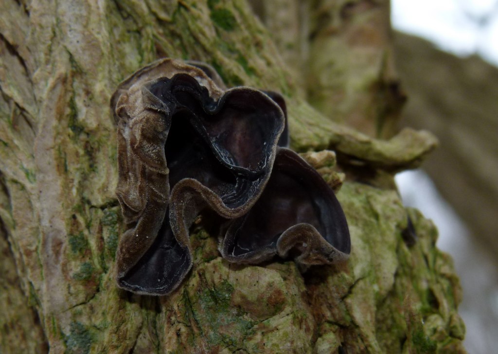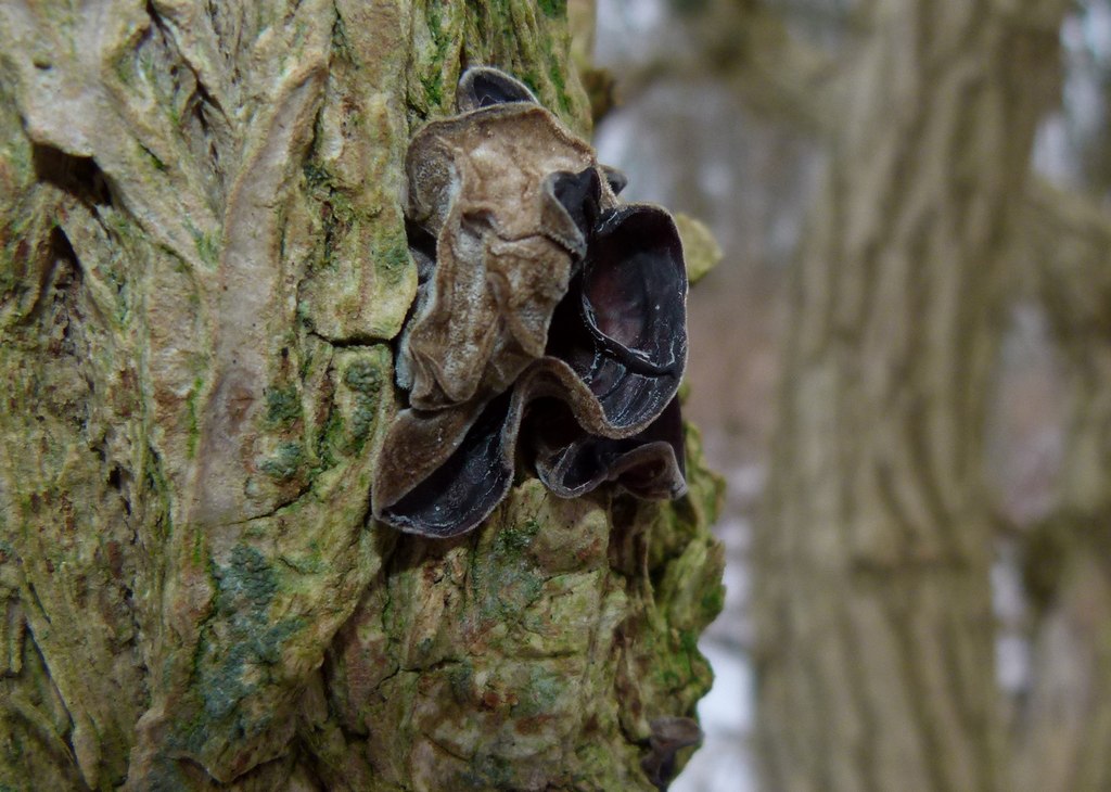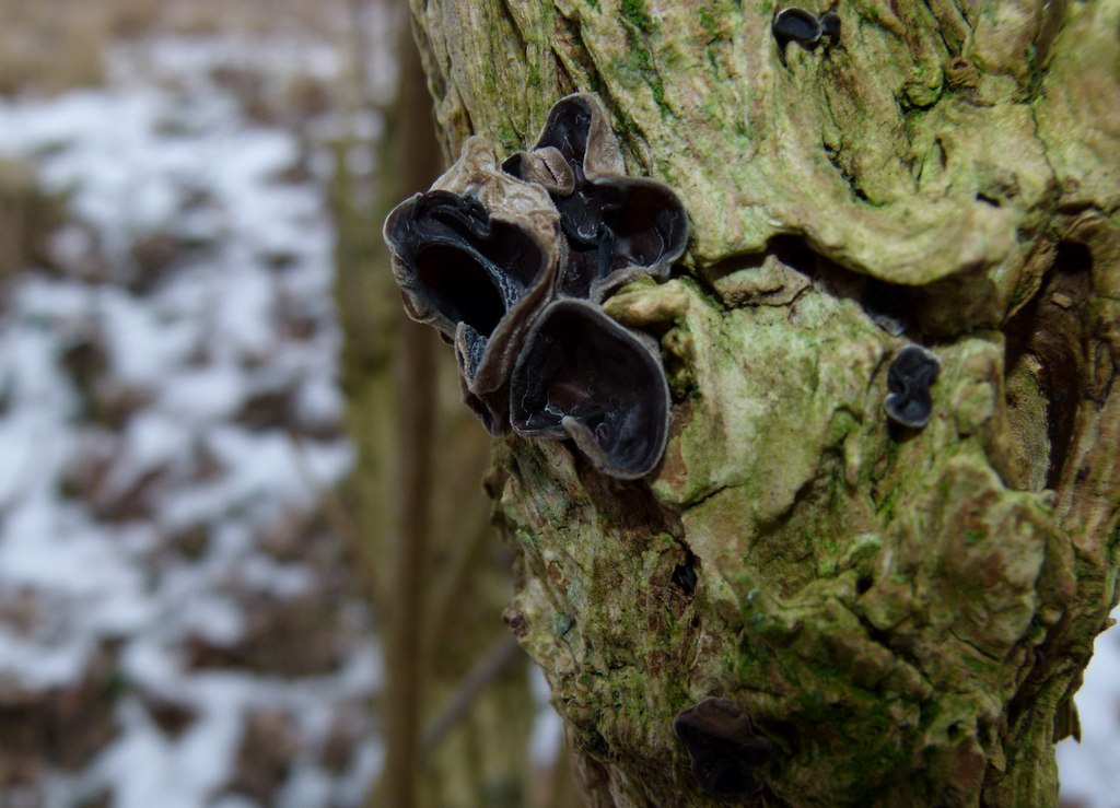im Nädlershorst südlich von Lübeck, einem Erlen-Moorbirken-Bruchwald mit angrenzenden anderen Laubwaldanteilen fand ich heute diese Pilze auf Holunder. Erst dachte ich natürlich an Judasohren, aber beim Näherkommen fiel mir die schwarze Innenseite auf, die mich an Schmutzbecherlinge erinnerte. Konsistenz gummiartig, kein Geruch feststellbar.