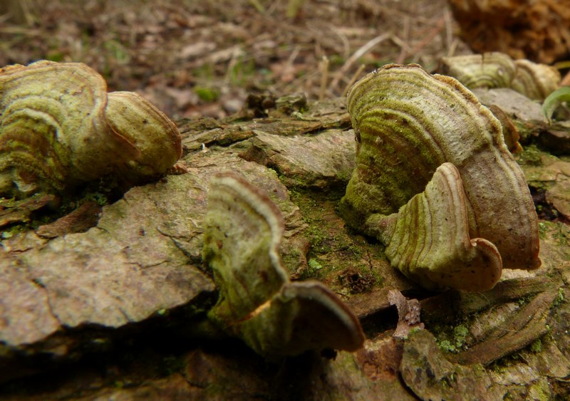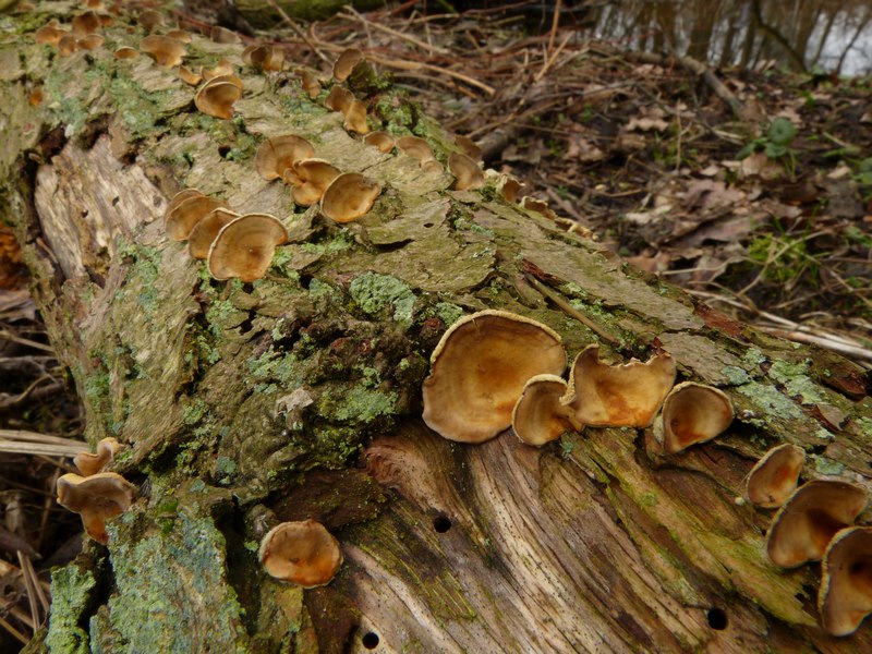 hier nochmal ein Porling bzw Schwamm von heute aus dem Laubholzbestand bei Hamburg, den ich nicht ausführlich untersuchen konnte, vom selben liegenden Laubholzstamm. Die Hüte fand ich sehr charakteristisch und irgendwie kommen die mir bekannt vor, aber..??