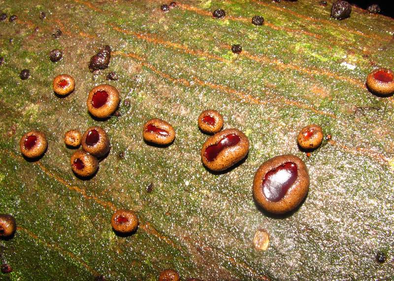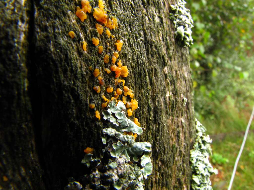 im Fröslever Moor an der deutsch-dänischen Grenze habe ich auf einem Holzpfahl gestern diese Pilze fotografiert. Wäre es nicht im Flachland, könnte sich um juvenile Dacryomyces chrysospermus handeln, sollte es also Tremella mesenterica sein? Sind die dafür nicht zu intensiv gefärbt? Also ganz was anderes? Wer hat hierzu eine Idee?